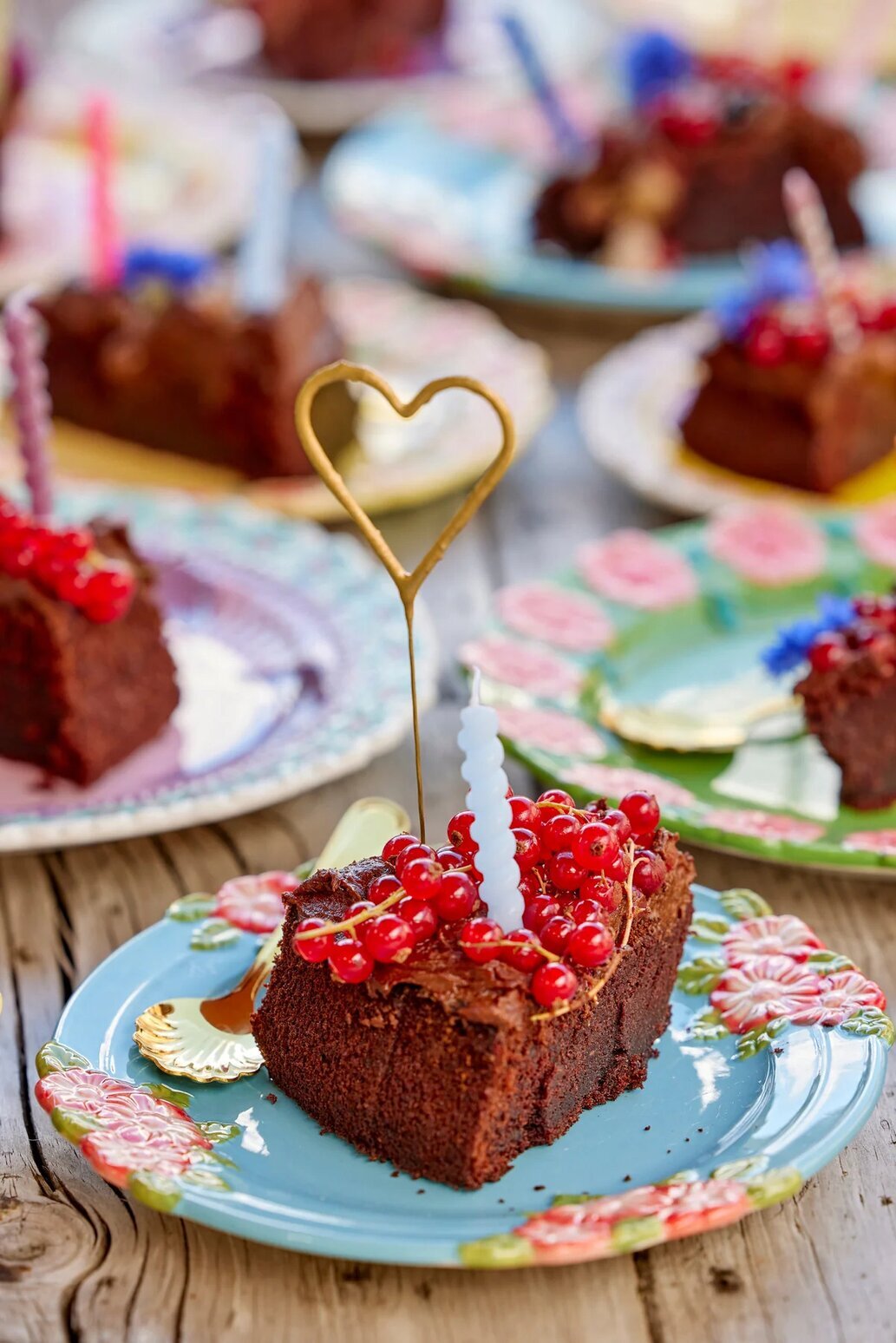 Tomtebloss Hjärta i guld, en fin detalj till kalas som dekoration på tårta & bakelser. Från Rice. Läs mer