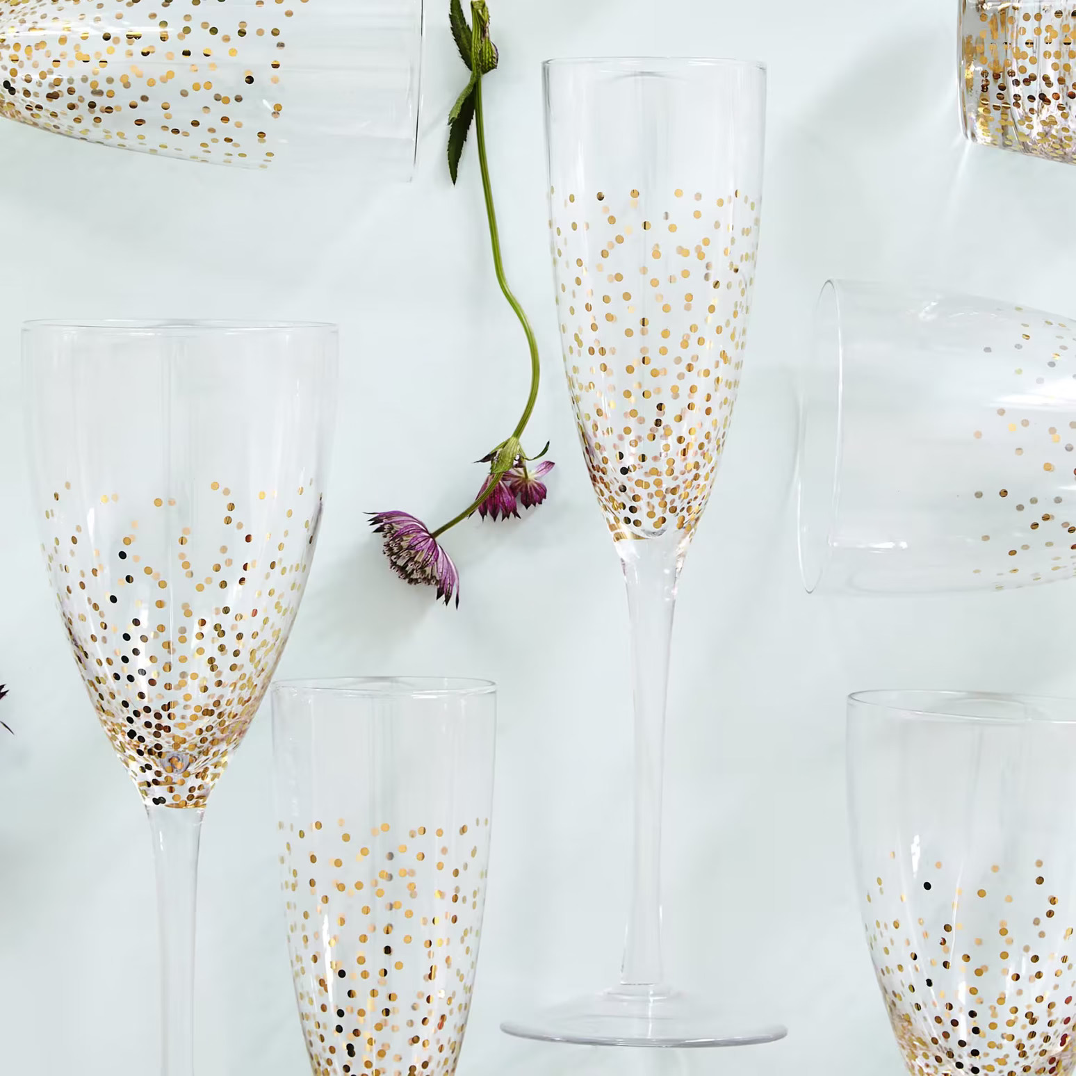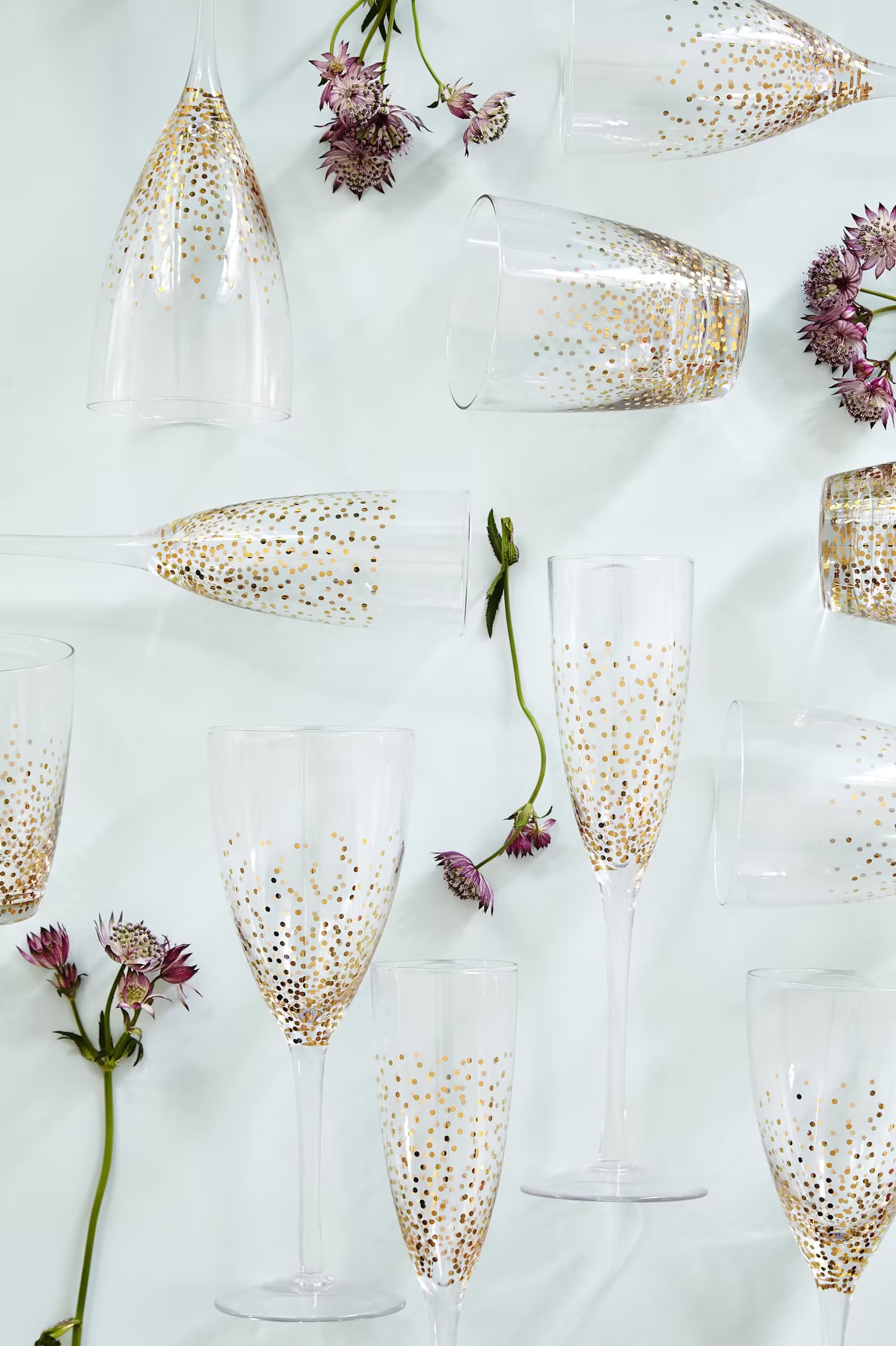 Champagneglas med guldprickar, ett måste till både fest & glamour.