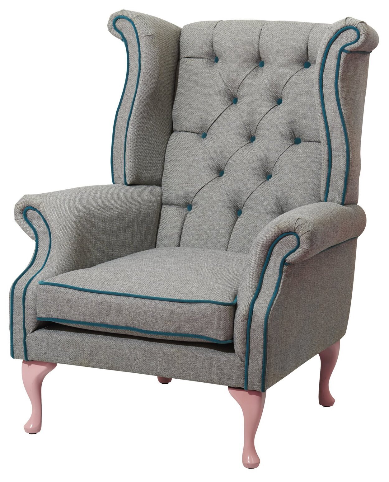 Sammanfattningsvis speglar denna bild den omsorg och precision som ligger bakom Wing Chair Grey With Petrol Piping, utmärkt för de som söker en kombination av modern design och funktionell komfort i sin inredning.