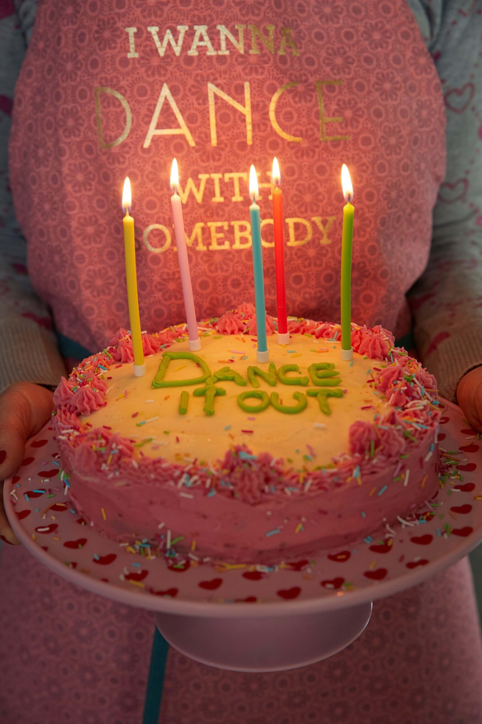 Bröstlappsförkläde med vackert rosa marrakeshmönster samt text - I Wanna Dance with Somebody. Förklädet passar utmärkt att använda vid matlagning eller bakning & har nackband samt knytbara midjeband i en fin grön nyans. Kan tvättas i 40 grader.