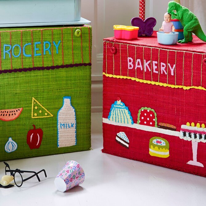 Vacker förvaringslåda i en härligt röd nyans från danska Rice. Förvaringslådan som är handgjord av bast är både praktisk och samtidigt underbart söt till leksaker, tidningar, tyger & garn mm. Taket är öppningsbart och fästes fast med små hakar. Förvaringslådan går att vika ihop och tar därmed minimalt med utrymme då den inte används.