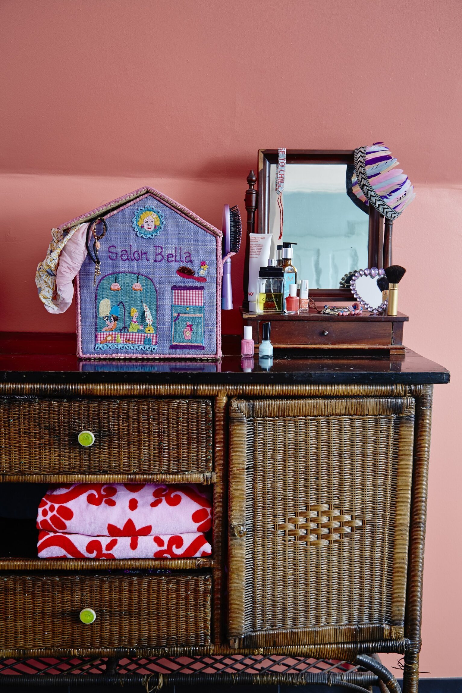 Charmig förvaringslåda/förvaringshus formad som ett lekfullt hus från danska Rice. Huslådan som är handgjord av färgglad bast är både praktisk och samtidigt underbart söt till leksaker. Taket är öppningsbart och fästes fast med små hakar. Korgarna har flätade handtag på sidorna och lekfullt broderade detaljer. Om huset blir konstant utsatt för solljus kan en viss blekning uppstå.
