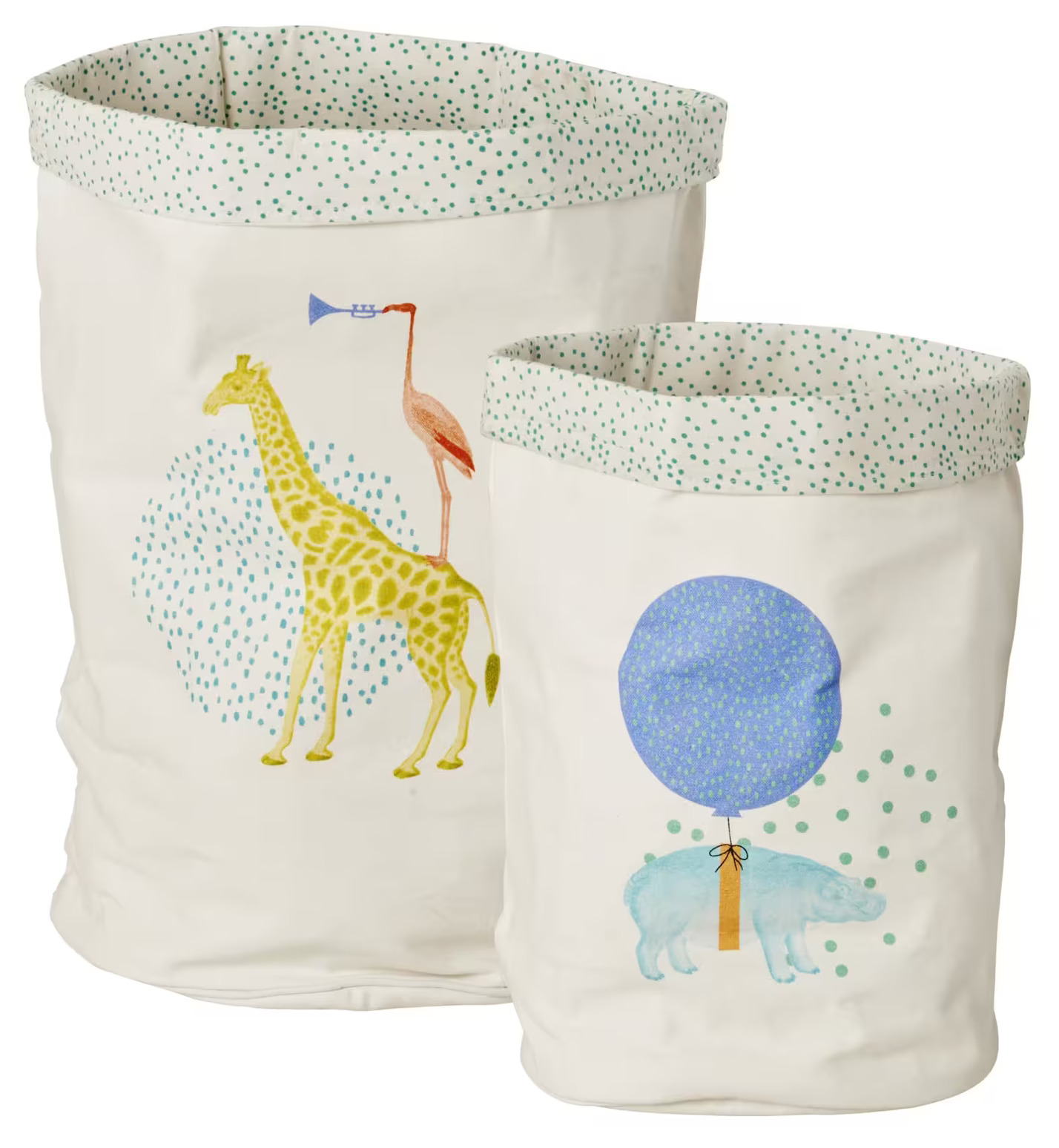 Förvaringskorgar, set om 2, i canvas. Förvara barnens leksaker, maskeradkläder, gosedjur eller använd dem som tvättkorg. Kan maskintvättas i 40 grader.