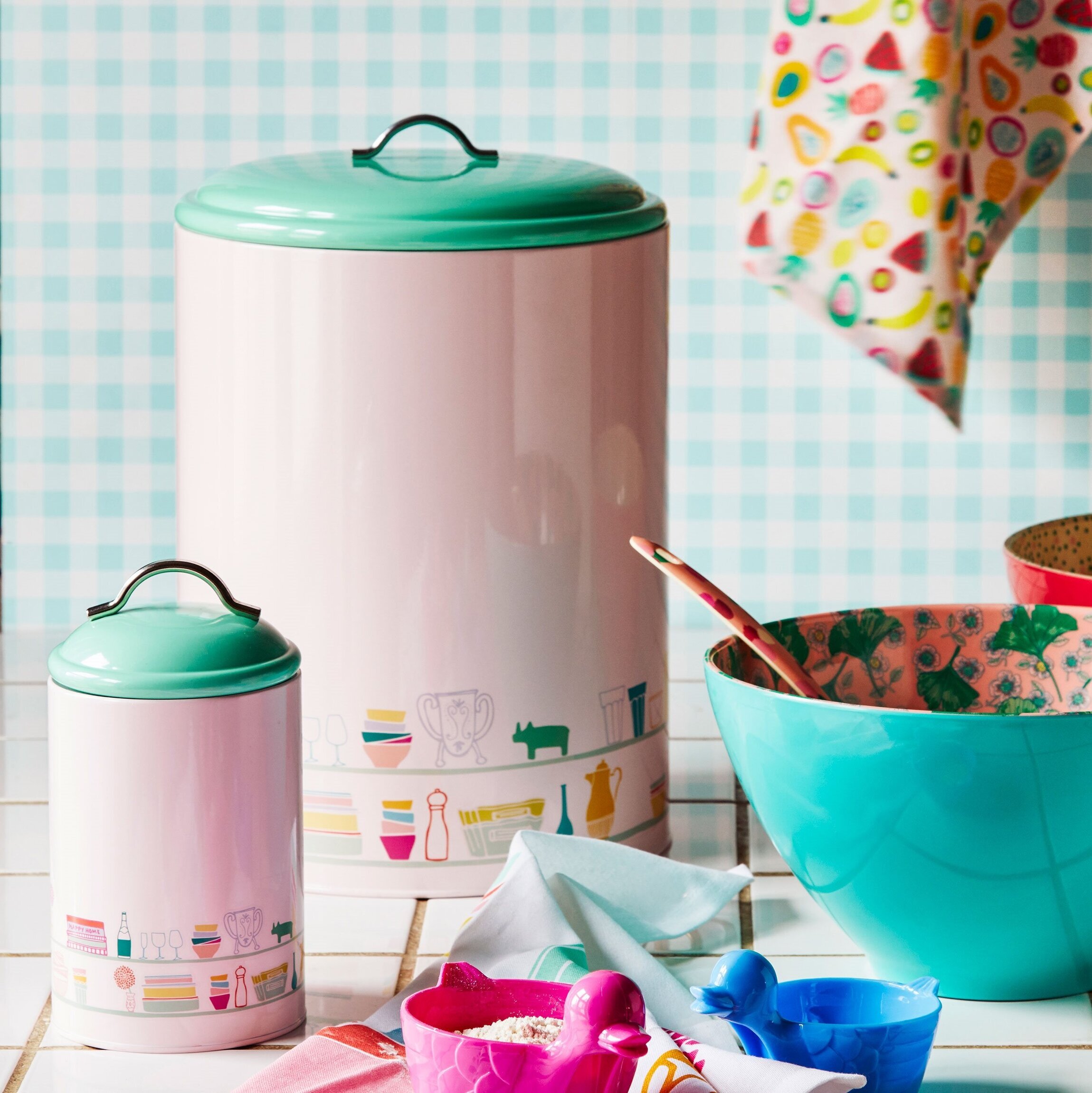 Stor förvaringsburk i emalj i härliga pastellfärger av ljusrosa & mintgrönt. Finns i två olika storlekar.