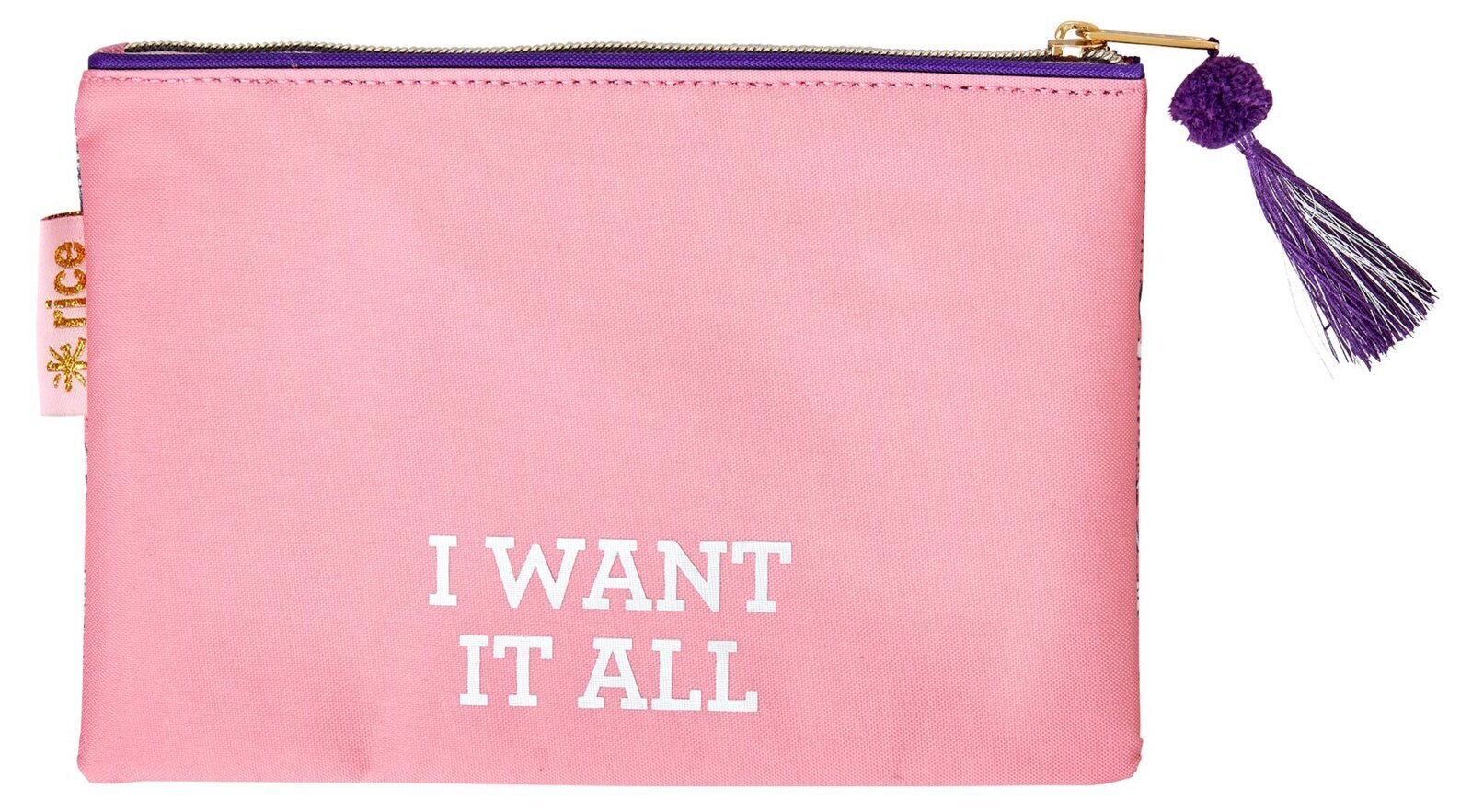 Förvaringsfodral med dragkedja som skyddar din surfplatta när den ej används. Vackert blommönster mot en rosa bakgrund, baksidan är enfärgad med texten - I Want It All. Mått: 31 x 2 x 23 cm.