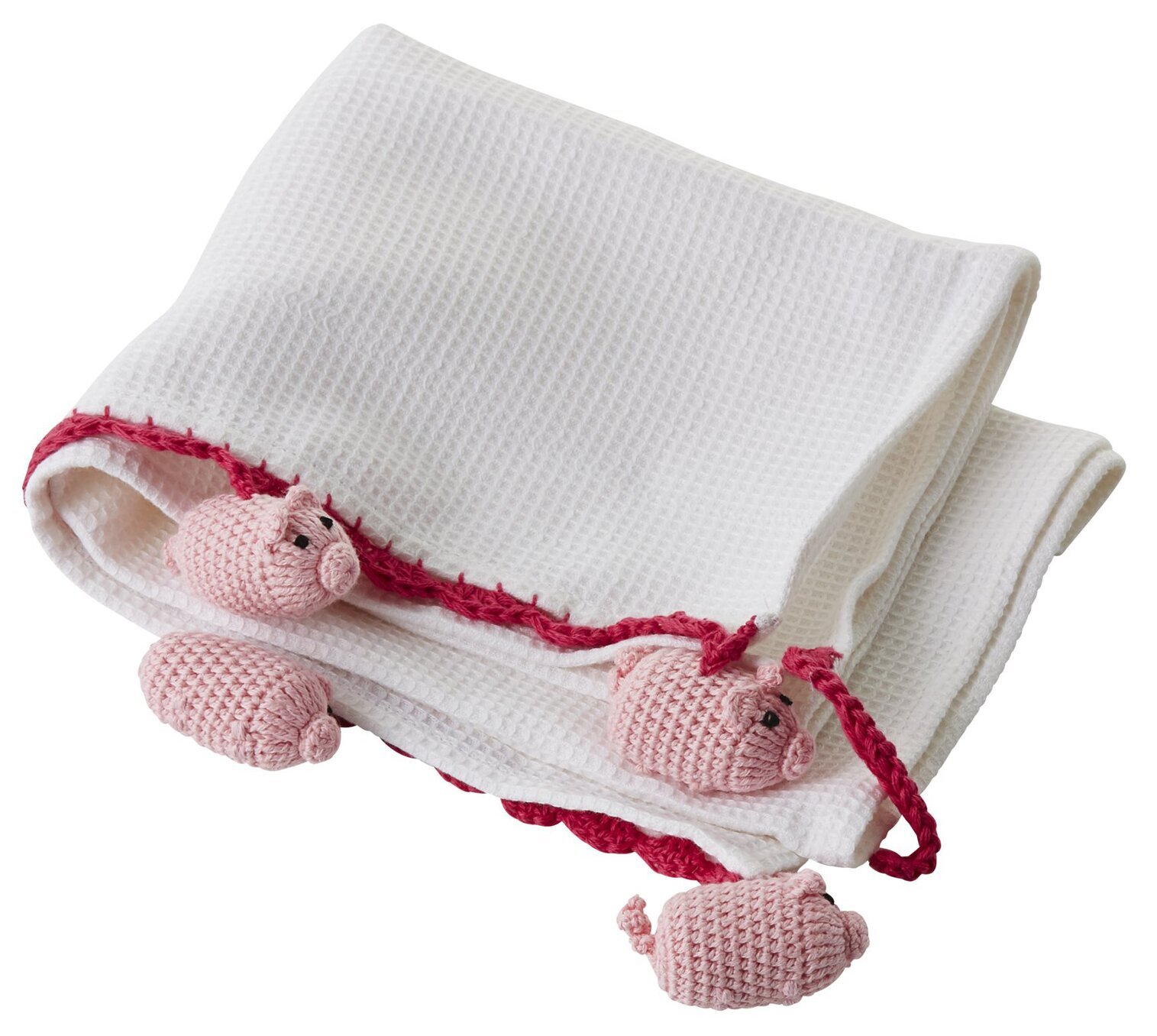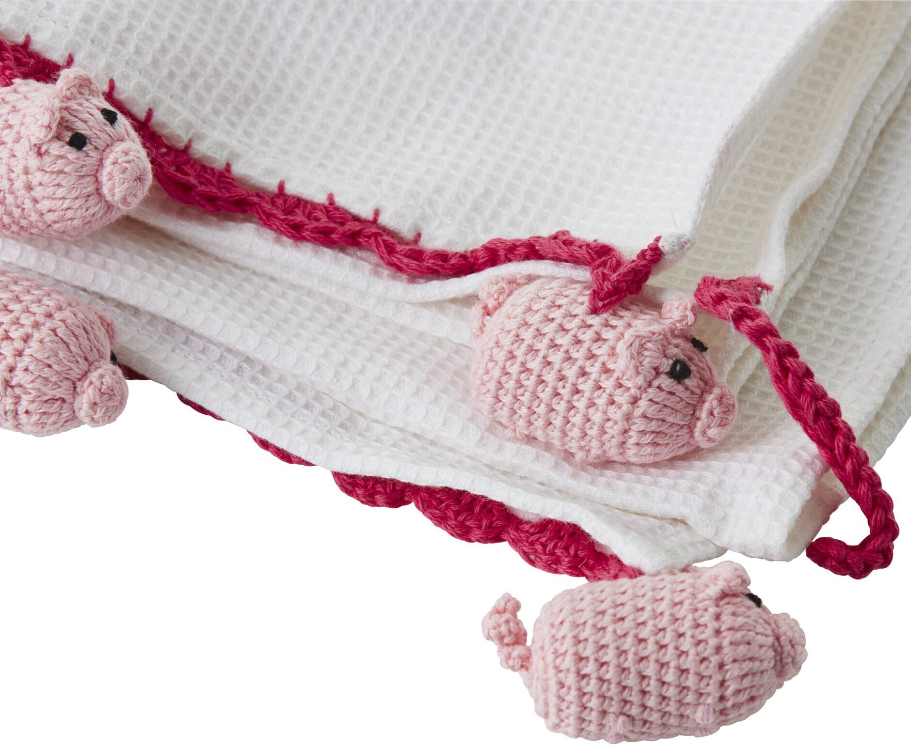 Kökshandduk med små söta virkade grisar. Mått: 60 x 40 cm. Läs mer