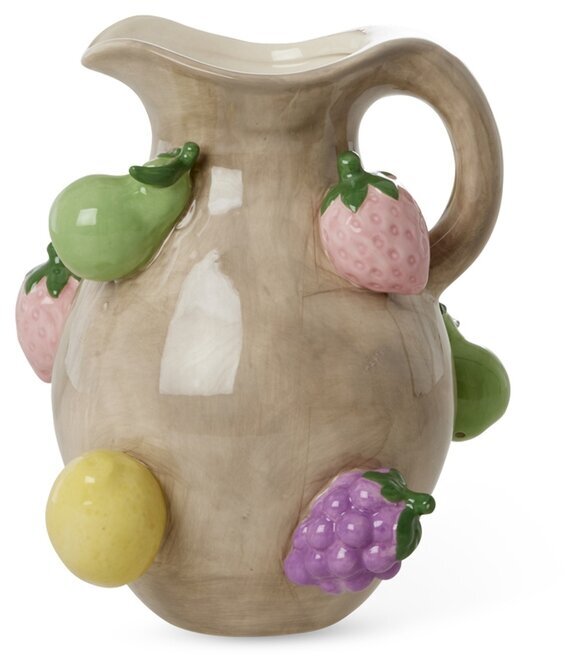 Servera drycker med stil med denna charmiga kanna från Rice. Tillverkad i tåligt stengods och dekorerad med handgjorda fruktmotiv i glada färger – en riktig blickfångare på både vardagsbordet och vid festliga tillfällen.