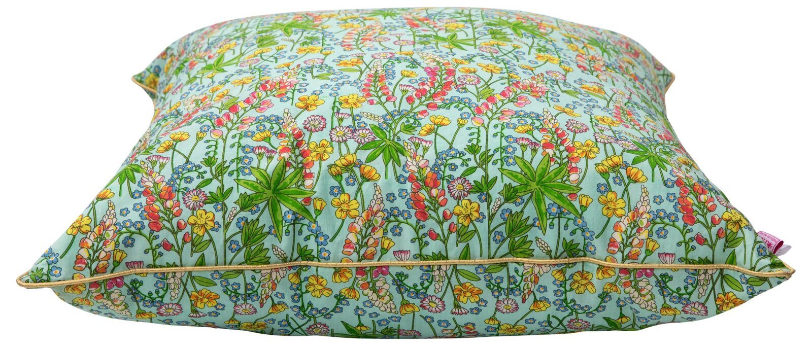 Kudde med somrigt print utav vackra lupiner samt gulddekor. Finns i flera olika storlekar & varianter.