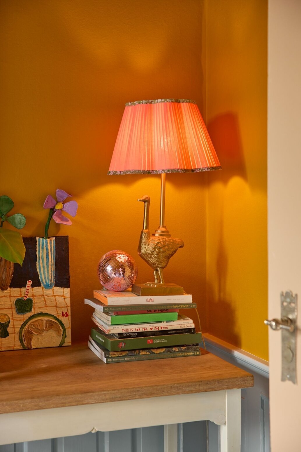 Lampskärm i veckad textil med blommig kant, från Rice. Läs mer