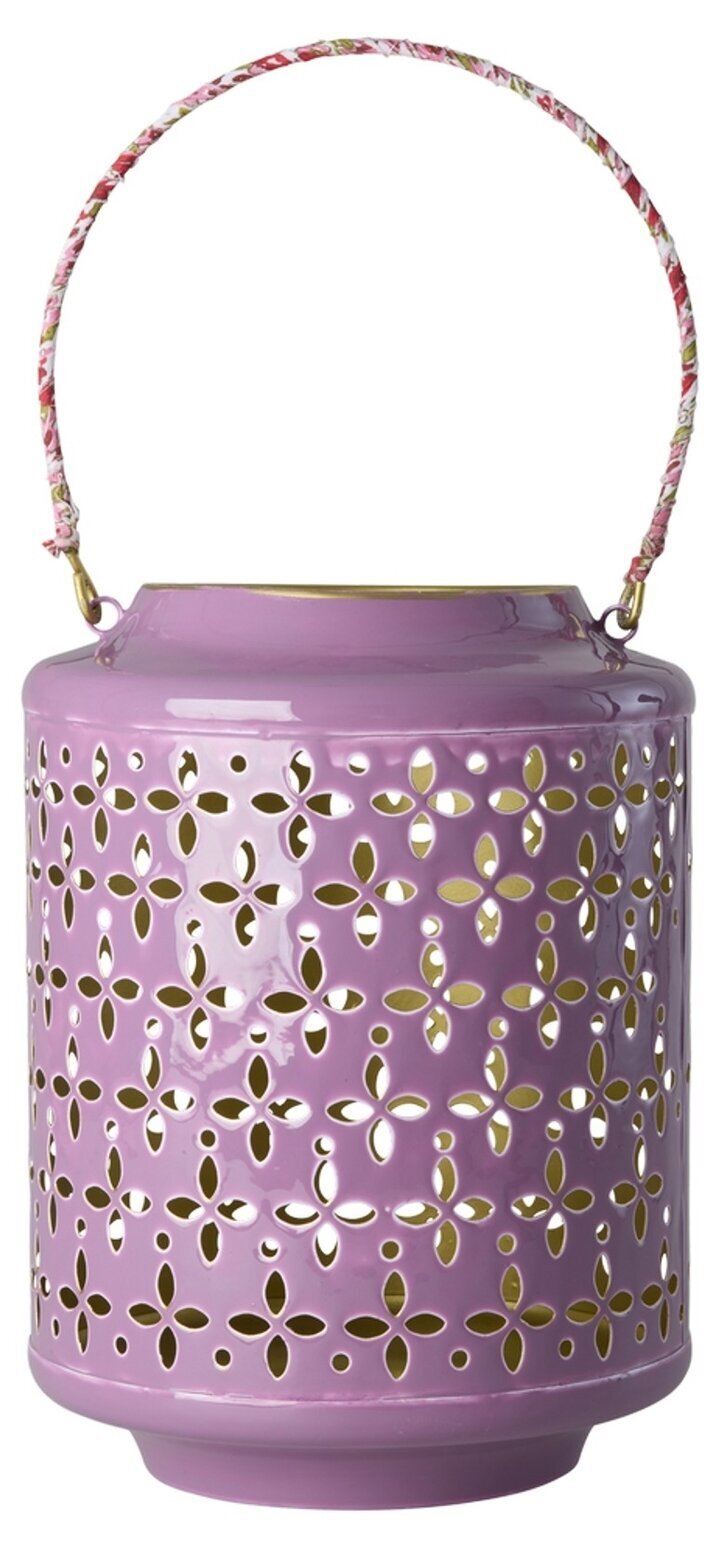 En dekorativ lanterna i metall som skapar en varm och inbjudande stämning. Det stansade mönstret släpper igenom ljuset på ett fint sätt, och den guldfärgade, mässingsskimrande insidan hjälper till att förstärka glöden när ett ljus tänds.