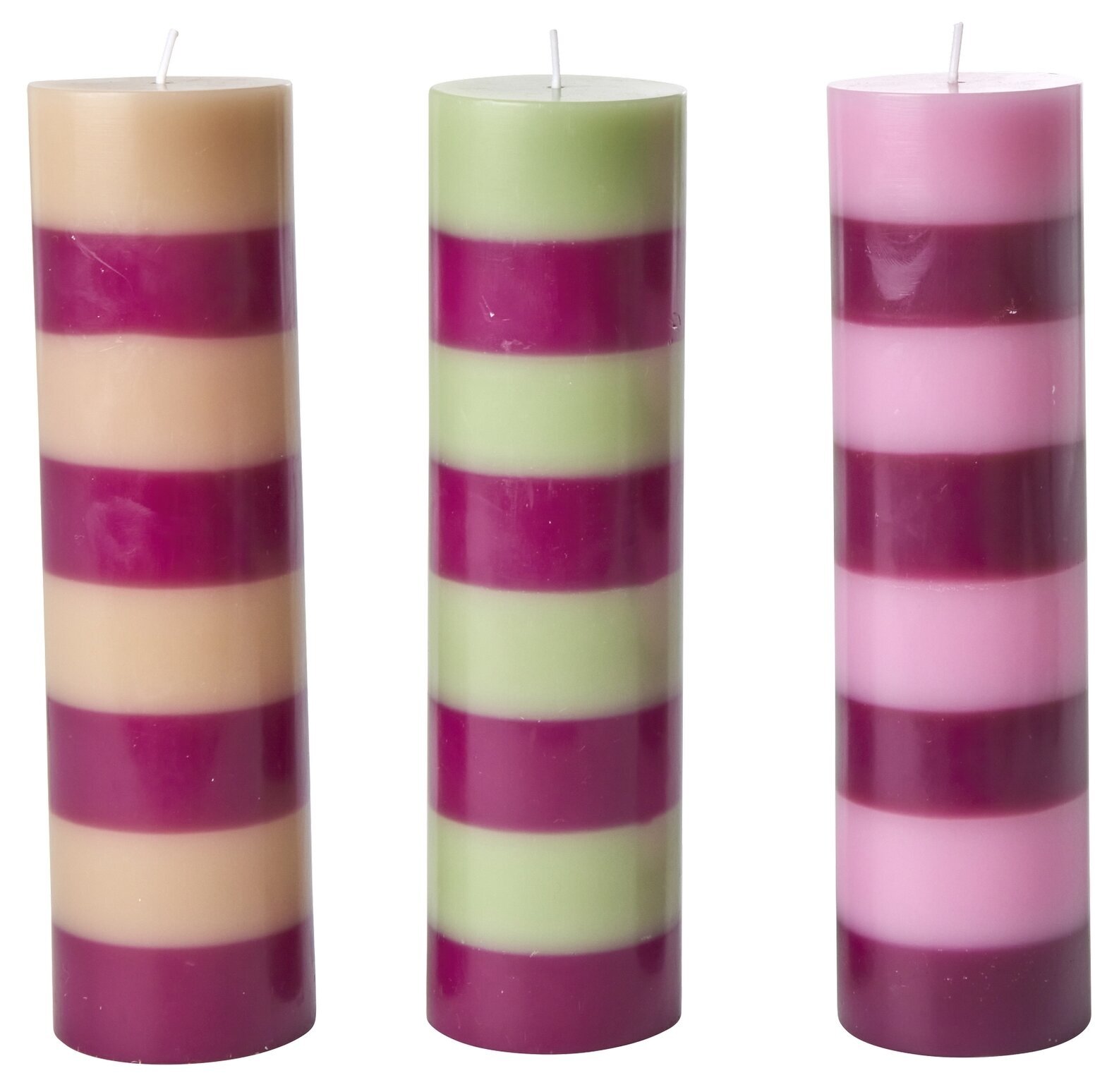 Randigt blockljus, finns i 3 olika färgkombinationer. Från Rice. Läs mer