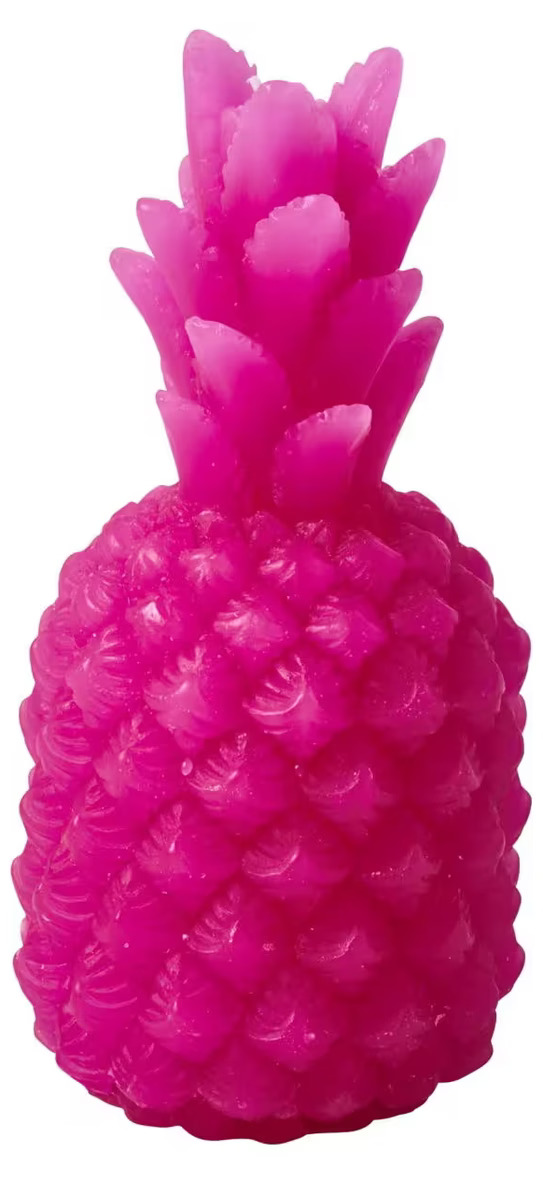 Bilden visar en produkt från butiken Köpstaden.se, känd för sitt breda sortiment av produkter för alla vardagliga behov. Här har vi ett dekorativt ljus, utformat i form av en ananas, och det kommer från varumärket Rice. Ljuset går under namnet Ljus Pineapple Cerise och har en distinkt och kraftfull ceriserosa färg som fångar ögat.