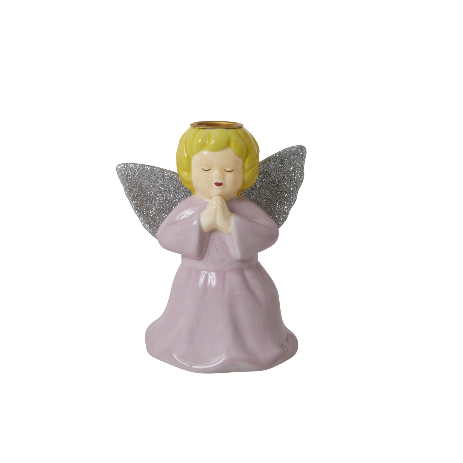 Vacker ängel med plats för ett kronljus, ängeln är tillverkad i keramik & har en fin rosa nyans med silvervingar.