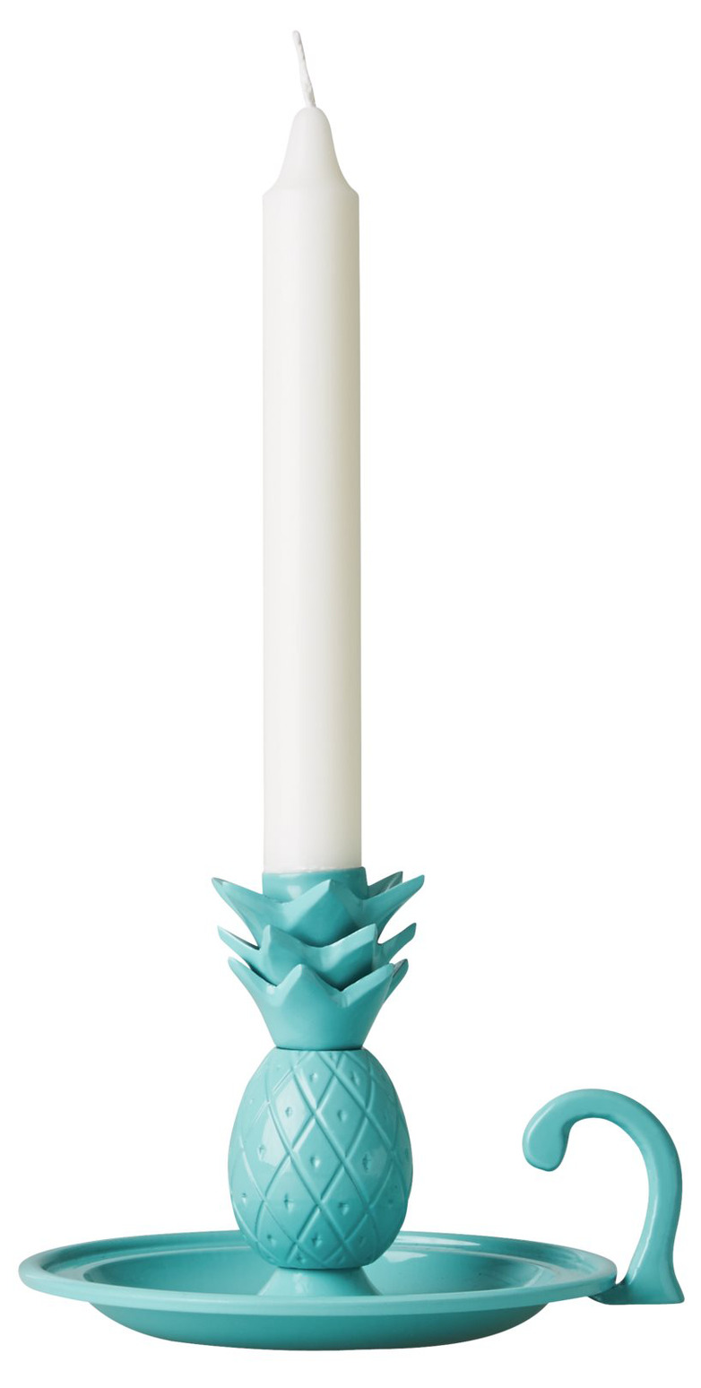 Bilden visar en unik ljusstake från Köpstaden.se, en butik som erbjuder en mängd olika produkter för att tillgodose de flesta av vardagens behov. Denna specifika produkt, kallad Ljusstake Pineapple Jade, är från varumärket Rice, känt för sina färgglada och funktionella designföremål.