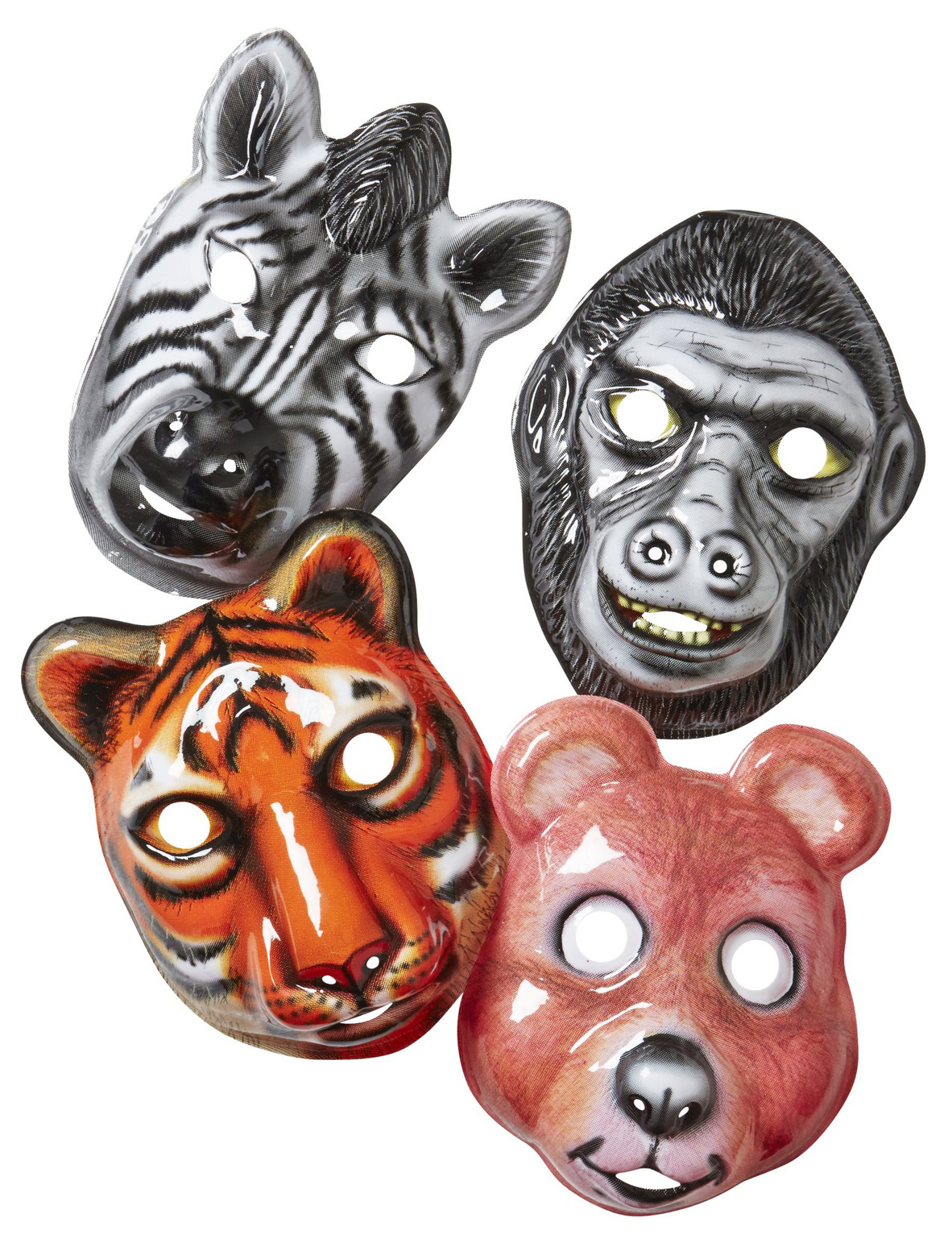 Masker i plast med tema - vilda djur. Passar både till lek & kalas.