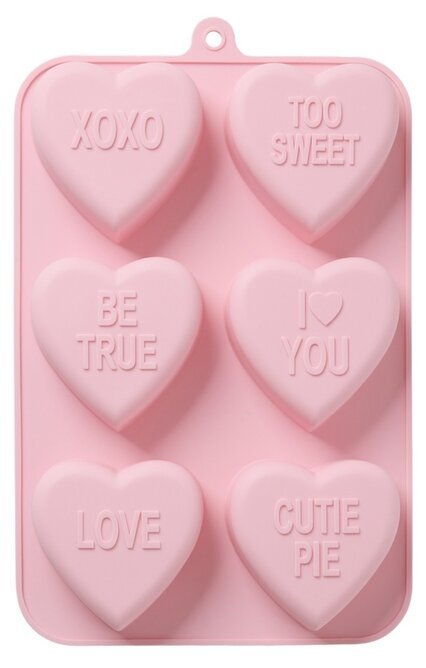 Baka med extra mycket kärlek. Den här rosa silikonformen har sex hjärtformade fack med gulliga texter som LOVE, XOXO och CUTIE PIE – perfekta för att sprida glädje vid födelsedagar, Alla hjärtans dag eller när du bara vill göra någon lite extra glad.