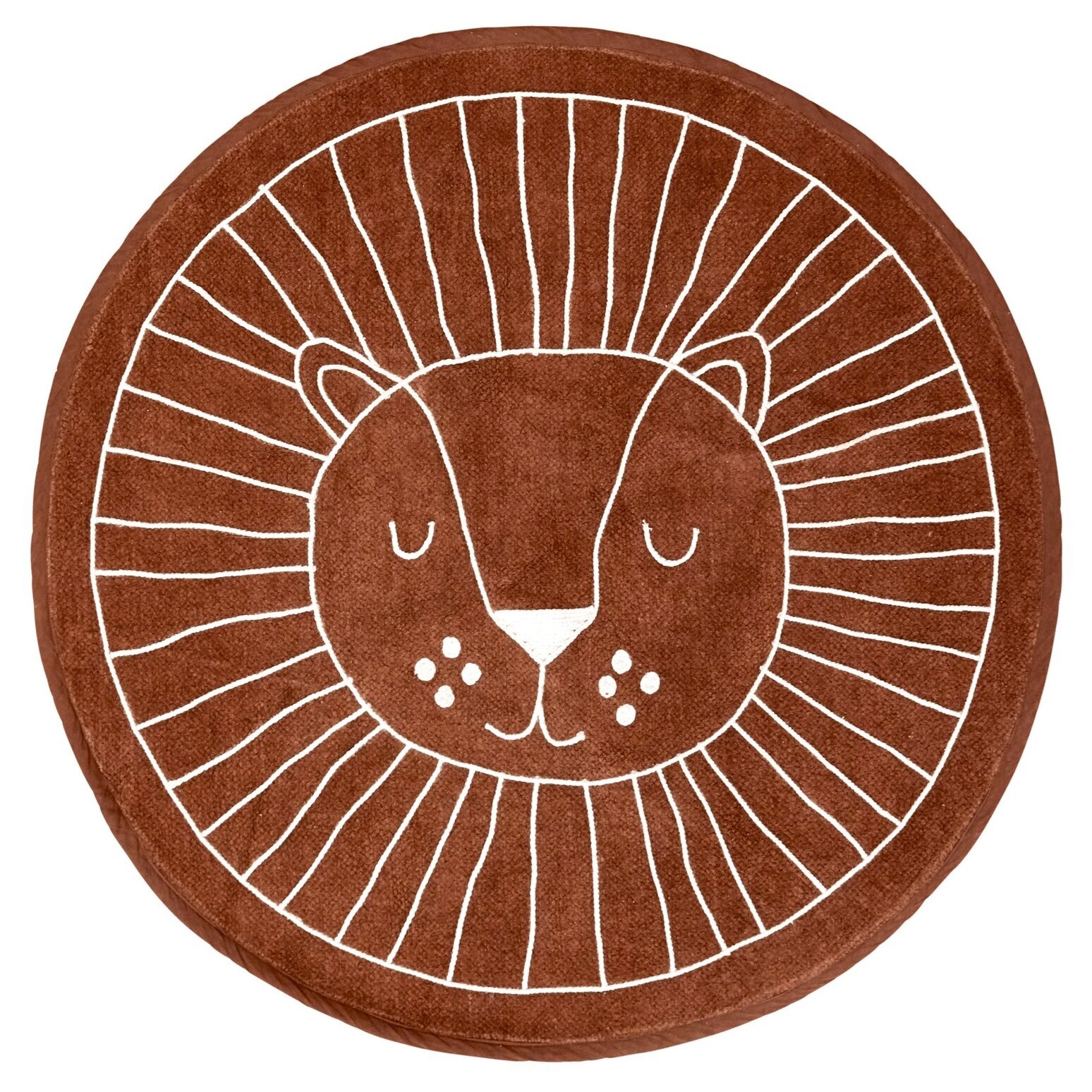 Rund matta med lejonmotiv som passar fint i barnens rum.