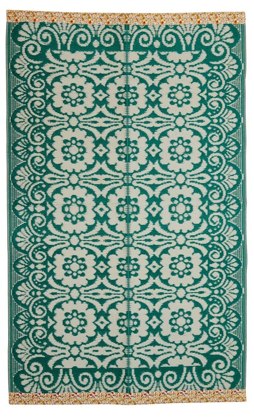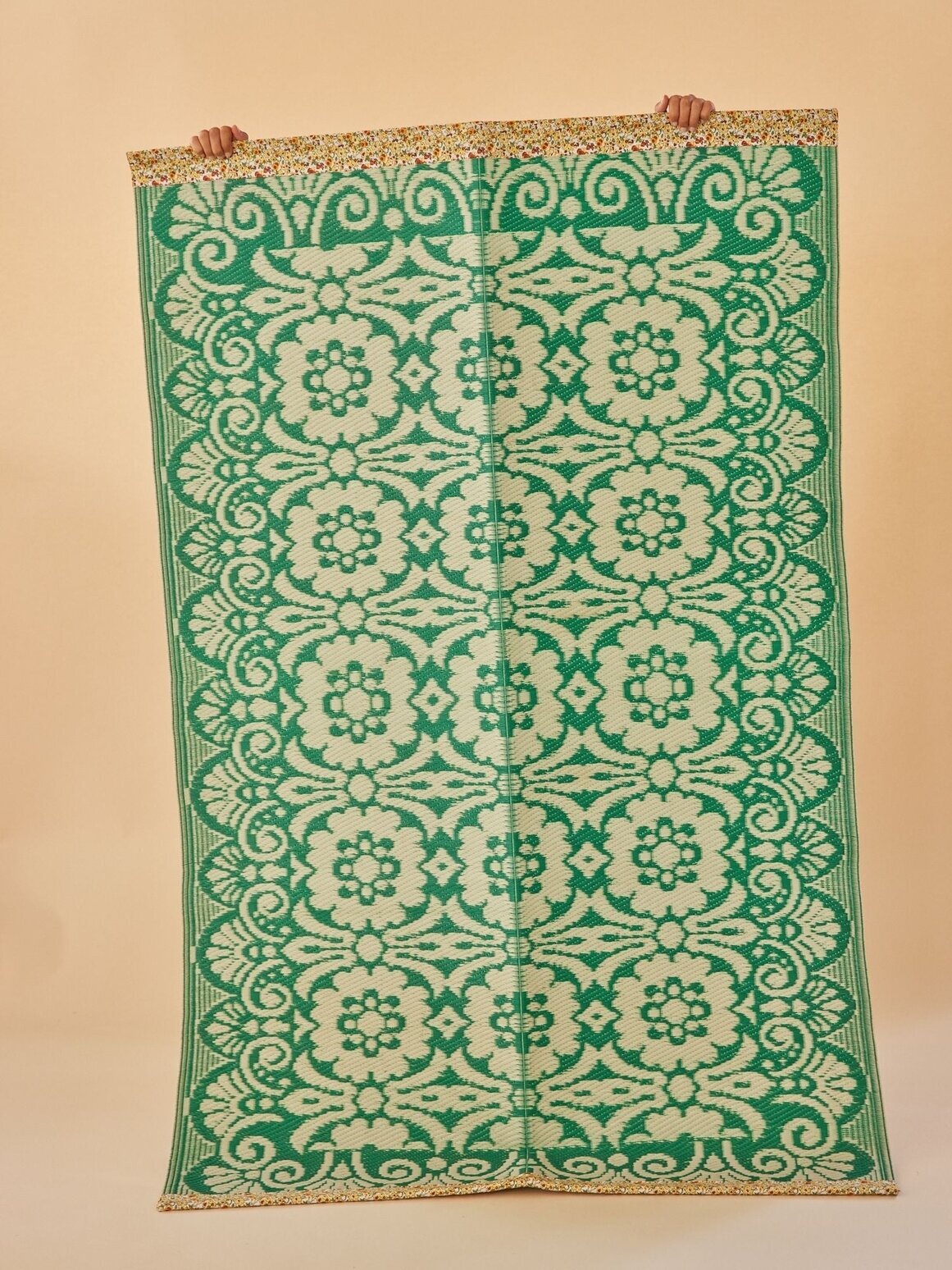 Fin matta som tillverkats av återvunnen plast med blommönster i grönt & offwhite, från Rice.