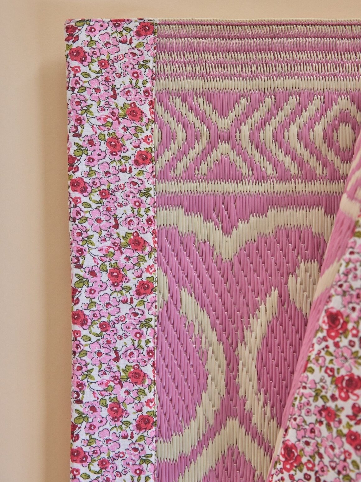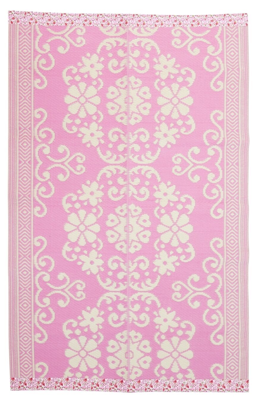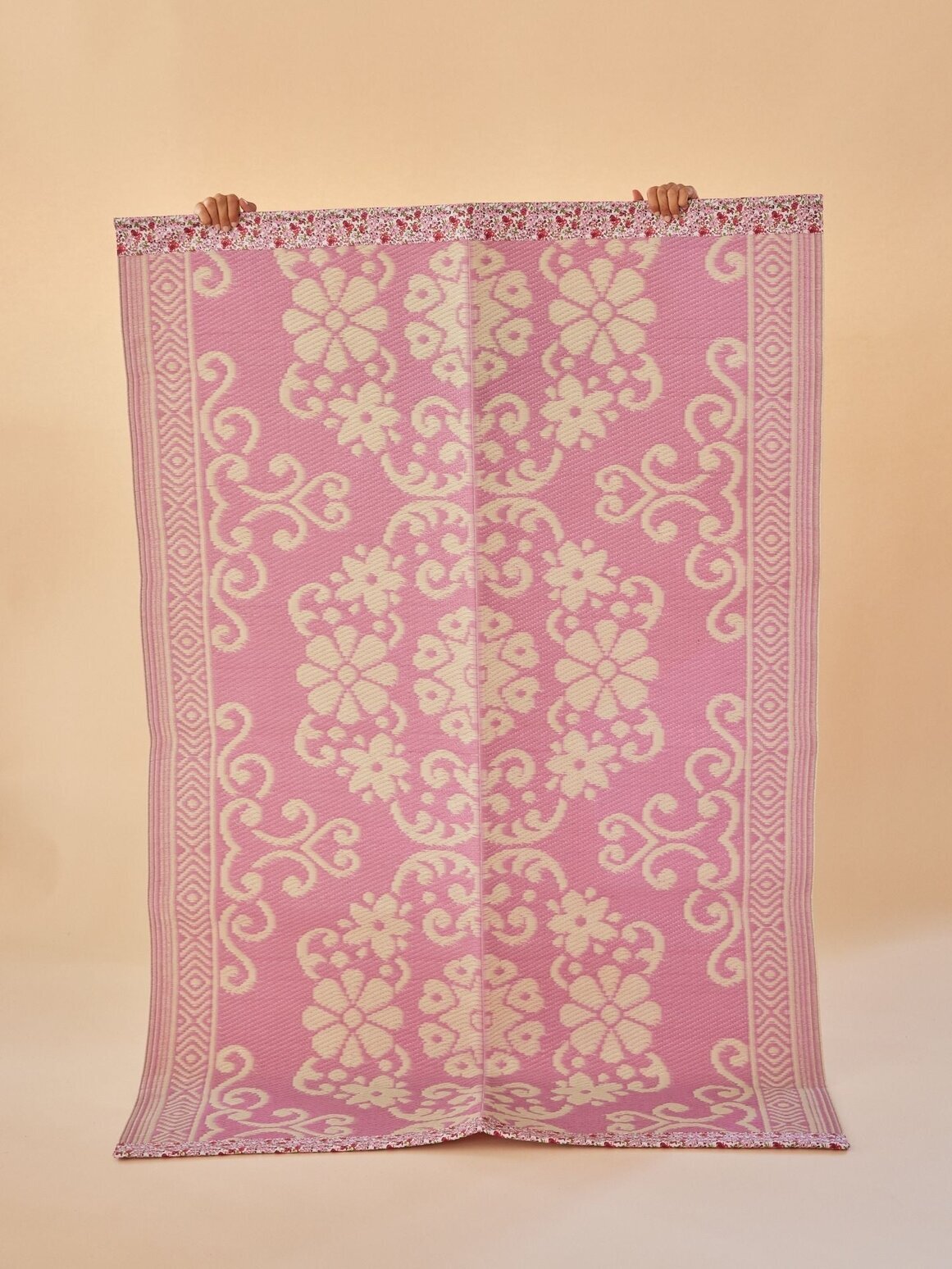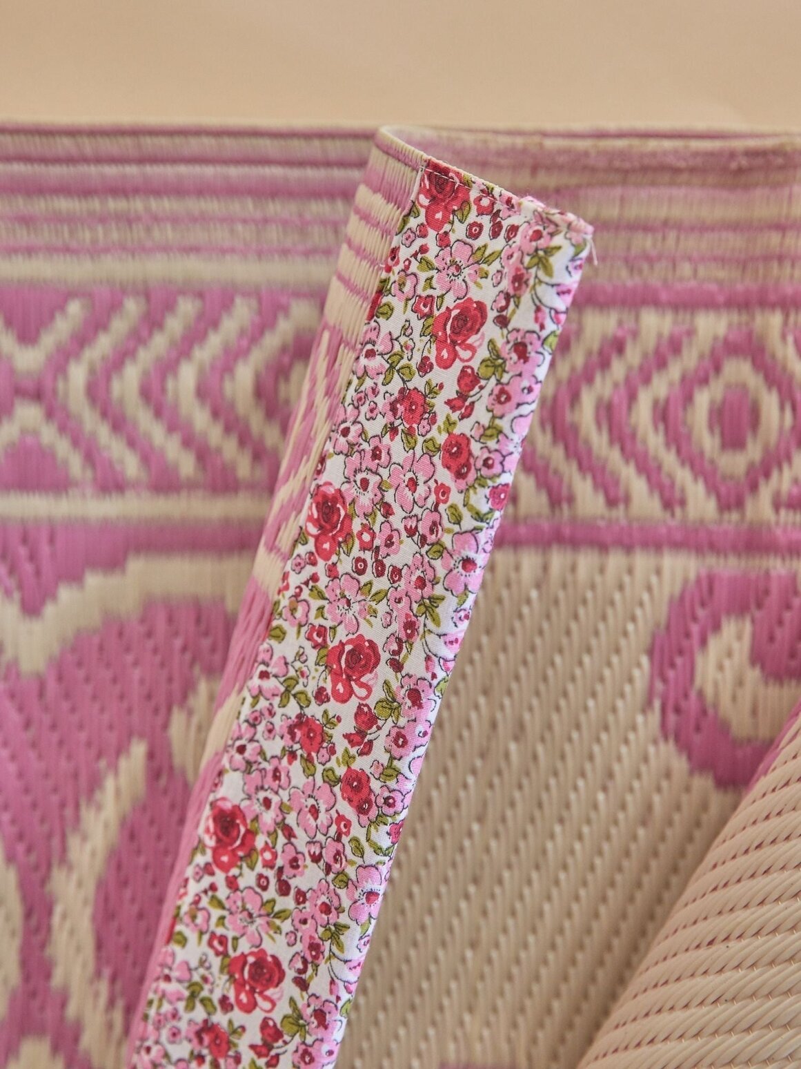 Fin matta som tillverkats av återvunnen plast med blommönster i rosa & offwhite, från Rice.
