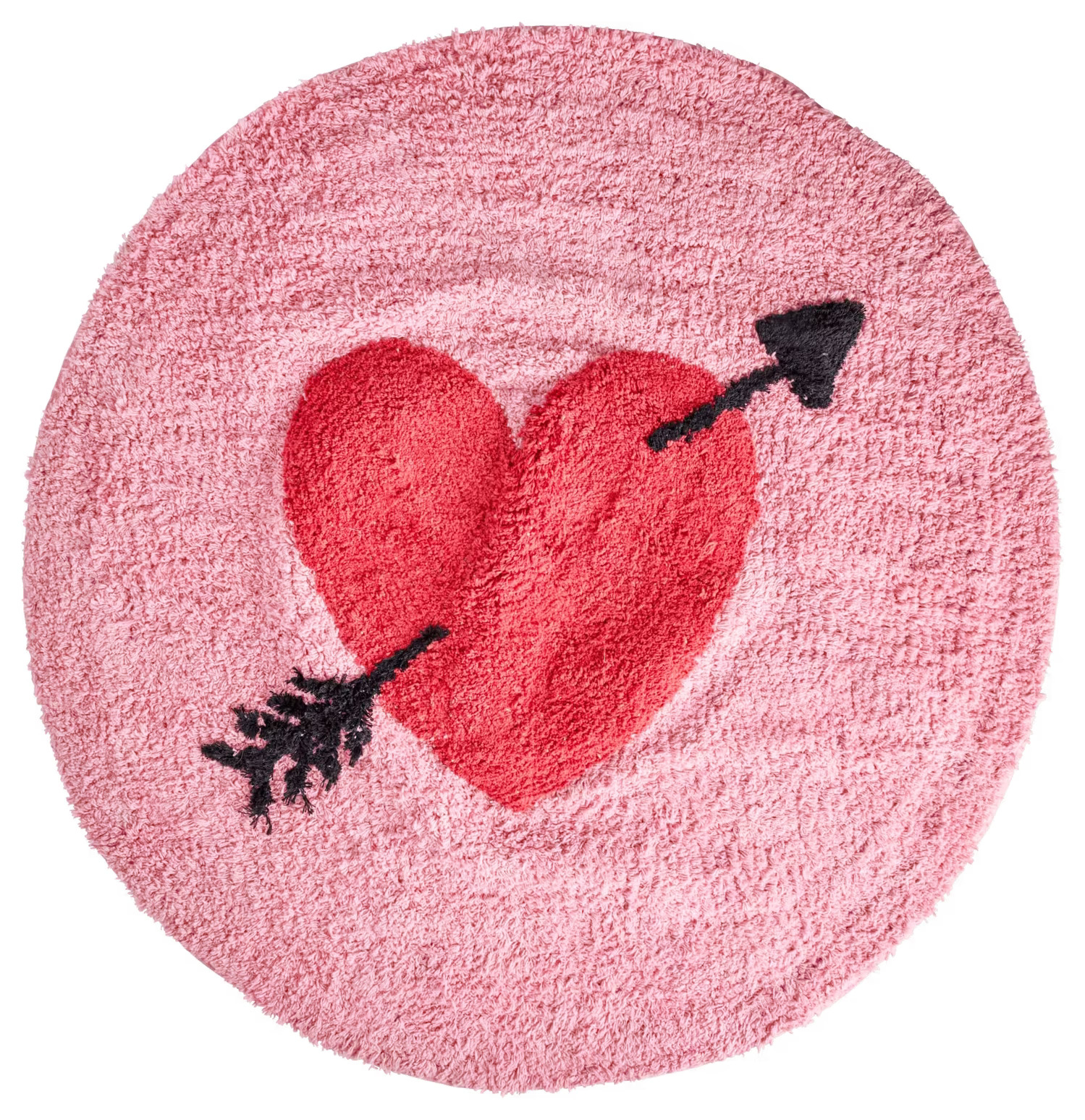 Mattan har en fluffig yta, vilket ger en mjuk känsla under fötterna, perfekt för att tillföra en mysig atmosfär till vilket rum som helst. Den runda formen bidrar till en harmonisk och balanserad estetik, vilket gör att den smidigt smälter in i olika inredningsstilar. De olika nyanserna av rosa som bildar mattans bas skapar en mjuk övergång som förstärker hjärtats centrala roll i designen.