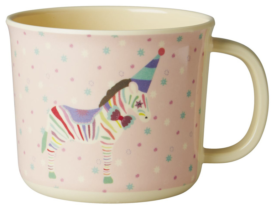 Bild av färgglad mugg med zebra och partyhatt för barn