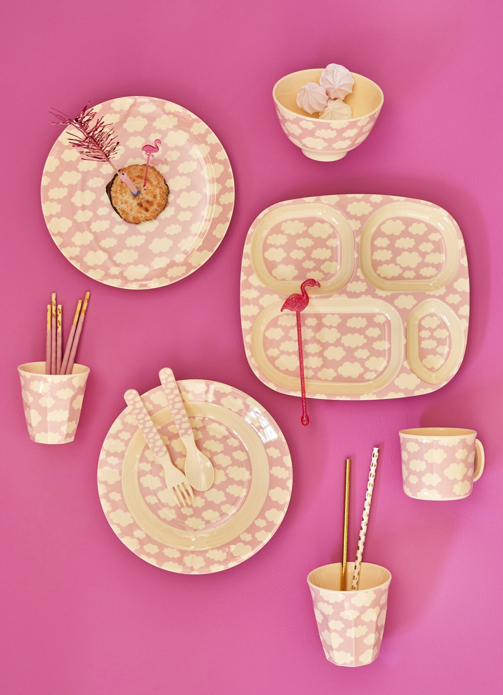 Rosa melaminmugg med moln från Rice som finns i flera färger och mönster, fina att kombinera tillsammans. Läs mer
