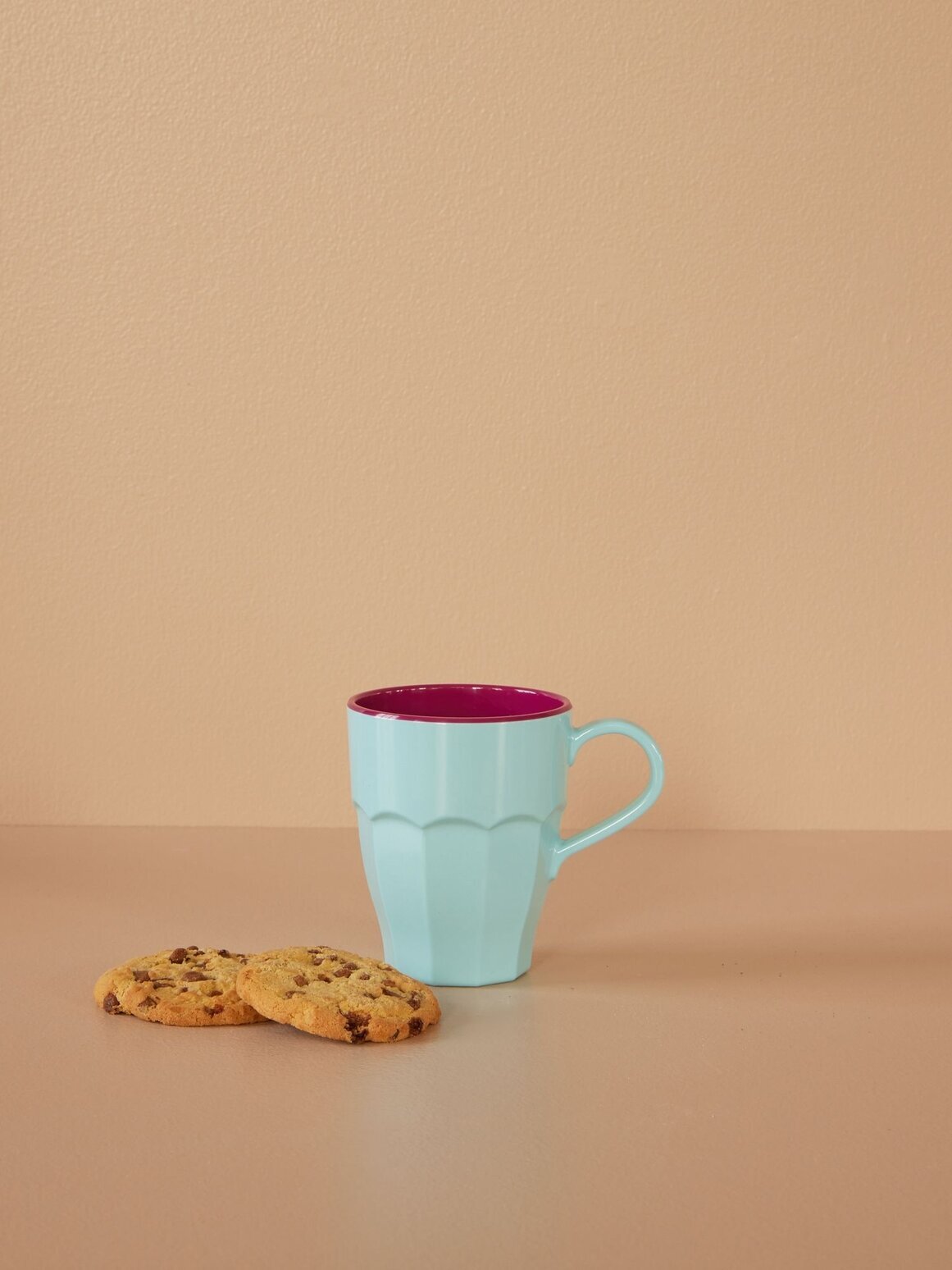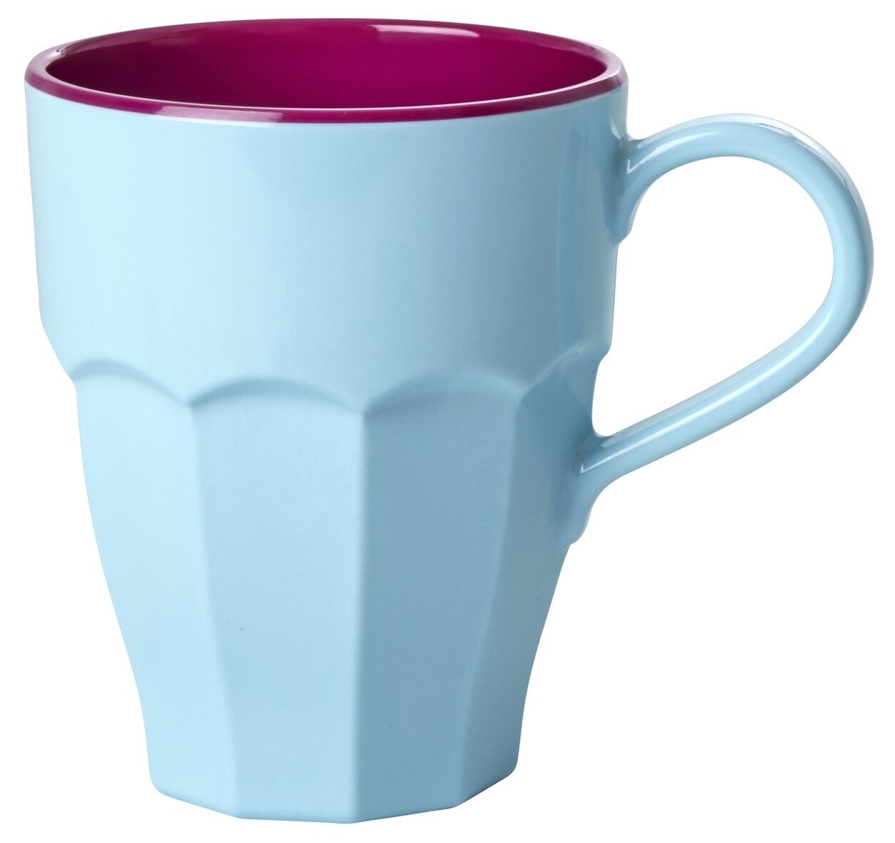 Melaminmugg med öra, finns i flera olika färger samt med matchande assietter. Från Rice.