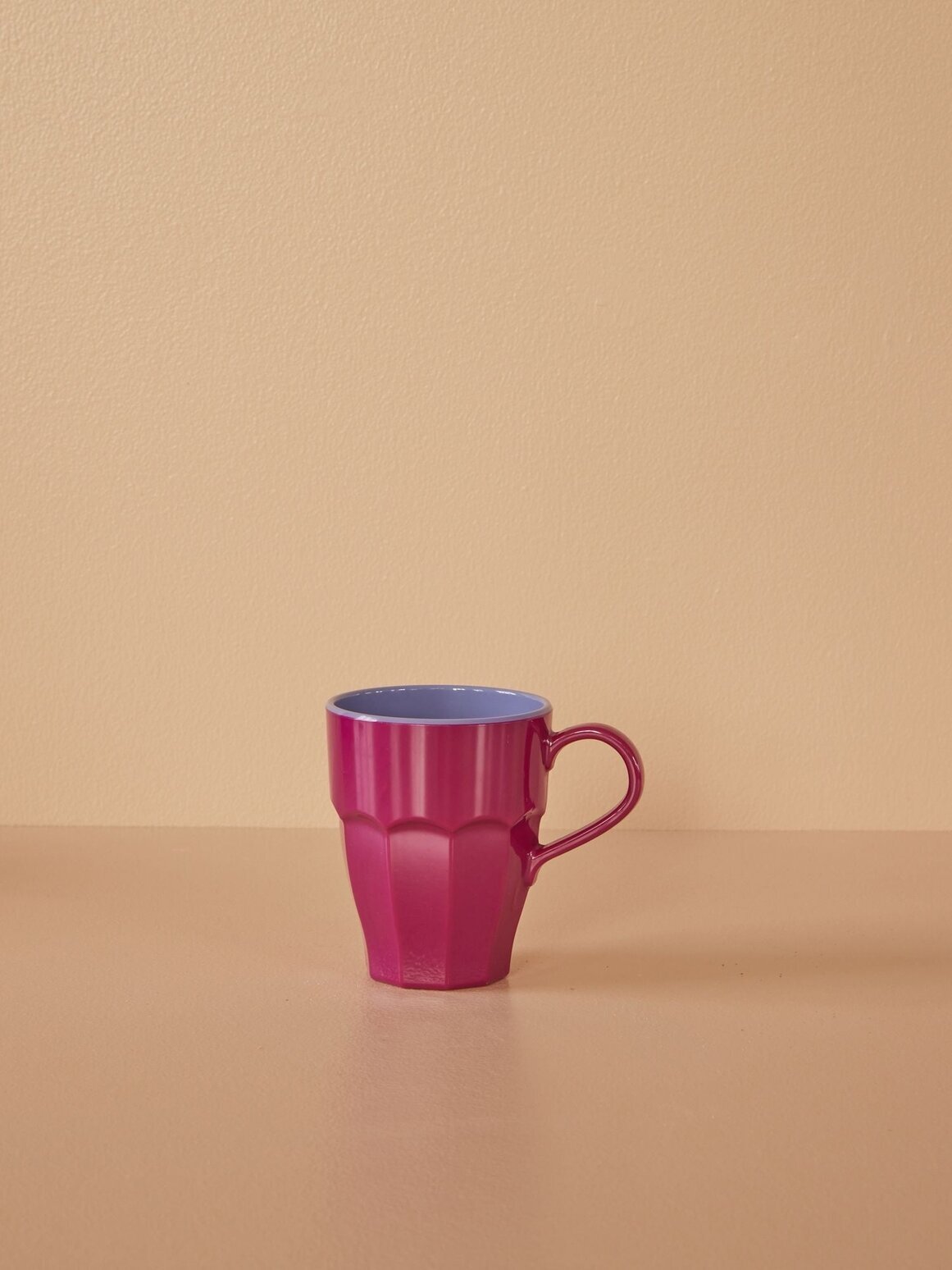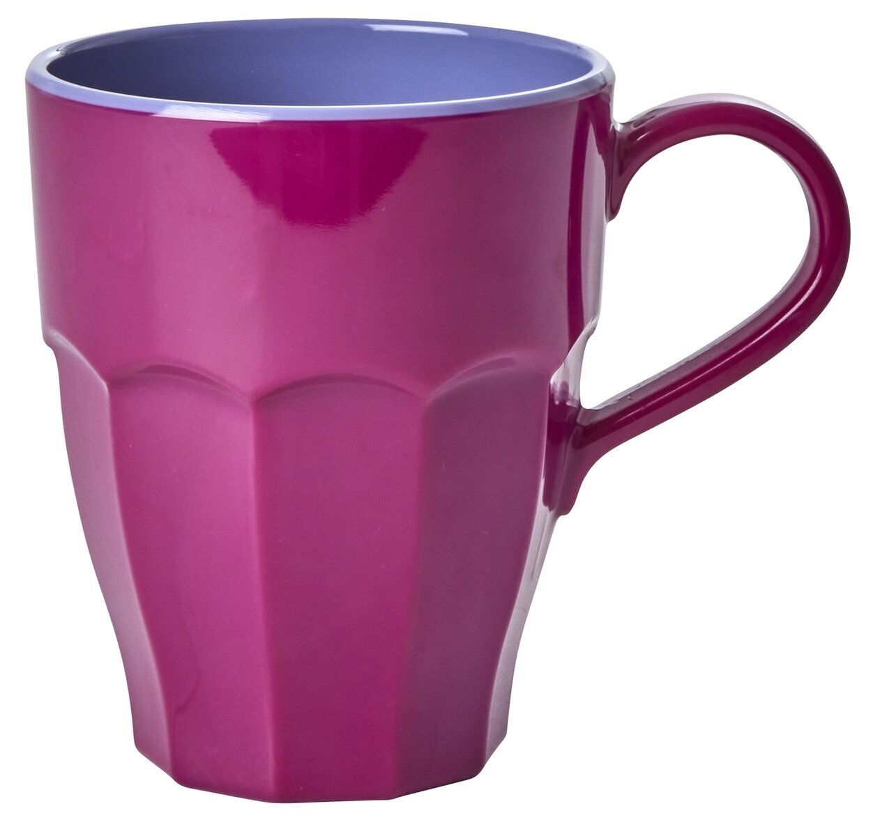 Melaminmugg med öra, finns i flera olika färger samt med matchande assietter. Från Rice.