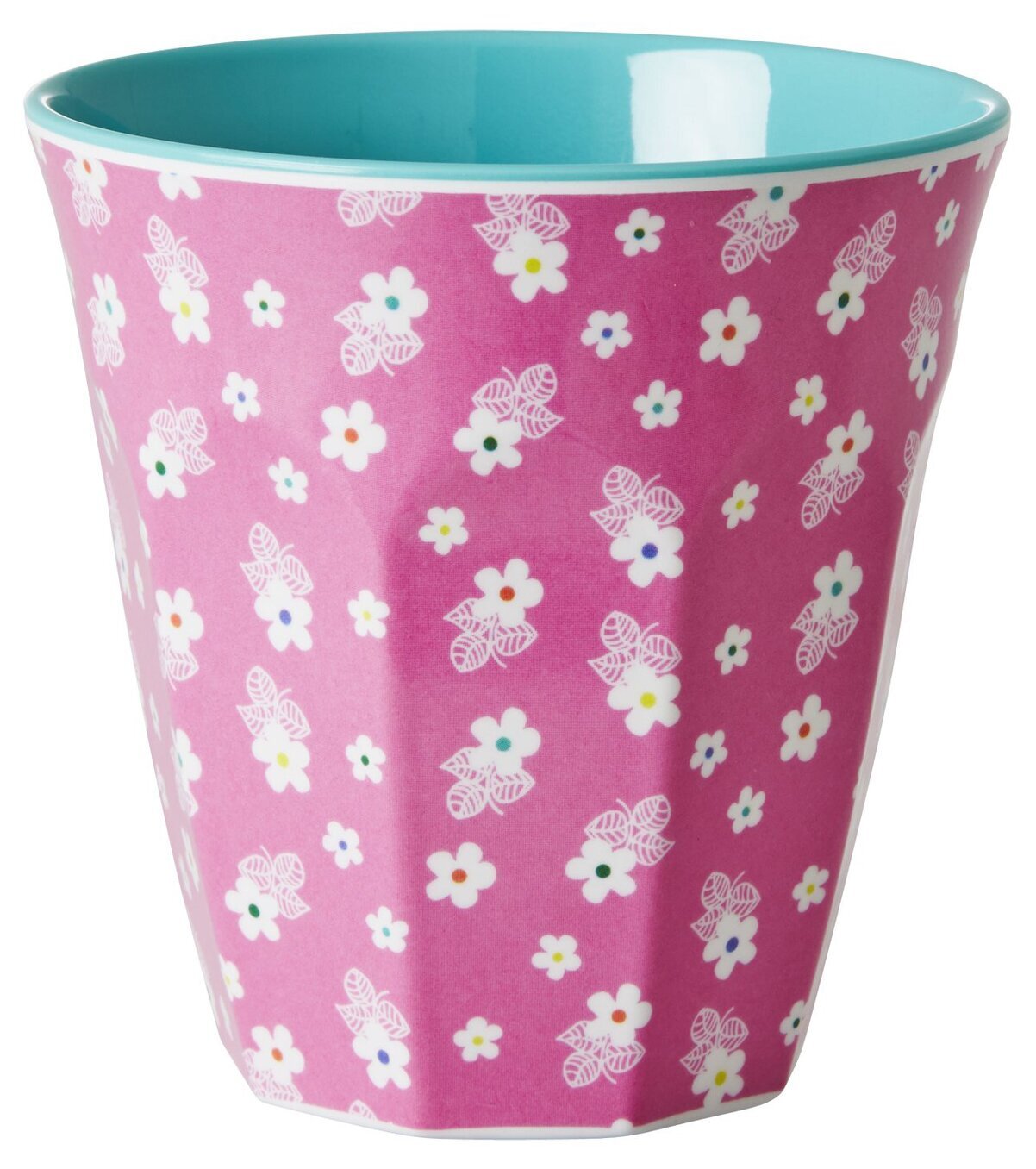 På bilden ser vi en mugg som heter Mugg Blommor Rosa, från det välrenommerade märket Rice. Den är en del av sortimentet hos Köpstaden.se, en butik med ett brett utbud av produkter som passar alla vardagliga behov. Denna mugg har en livfull rosa färg som utgör basen för dess design. Spridda över hela ytan finns ett mönster av små blommor i olika färger, vilket ger en känsla av lekfullhet och lust.