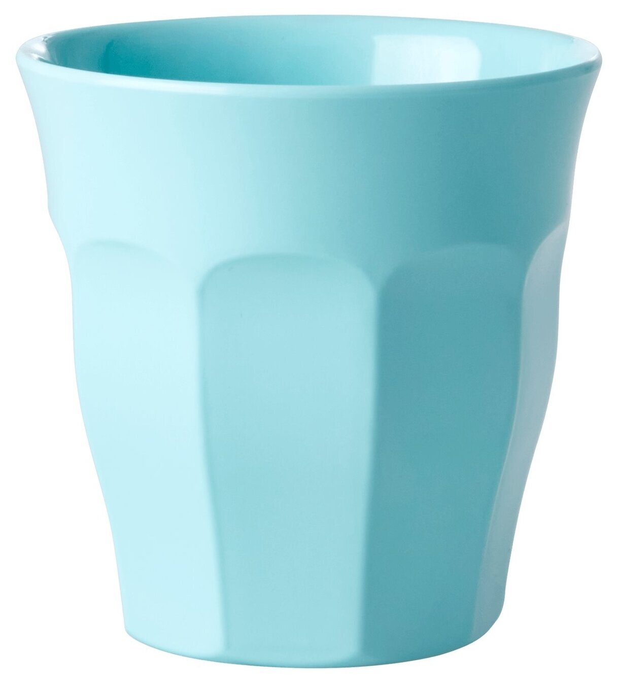 Bilden visar en mugg från Köpstaden.se, en butik känd för sitt breda utbud av produkter för vardagens alla behov, med specifik fokus på "Muggar Medium 6-Pack, Yippie Yippie Yeah Colors" från varumärket Rice. Muggen som avbildas har en mjuk och tilltalande pastellblå nyans som ger ett fräscht och modernt intryck. Den är tillverkad i ett hållbart material, vilket gör den praktisk för både inomhus- och utomhusbruk.