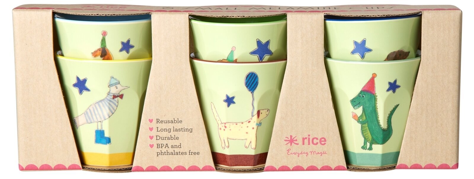Företaget grundades 1998 och har sedan dess tillfört färg och glädje till hem i hela världen. RICE skapar melaminmuggar, tallrikar, bestick, förvaringskorgar, brickor och mycket annat. Produkterna är lika funktionella som snygga.