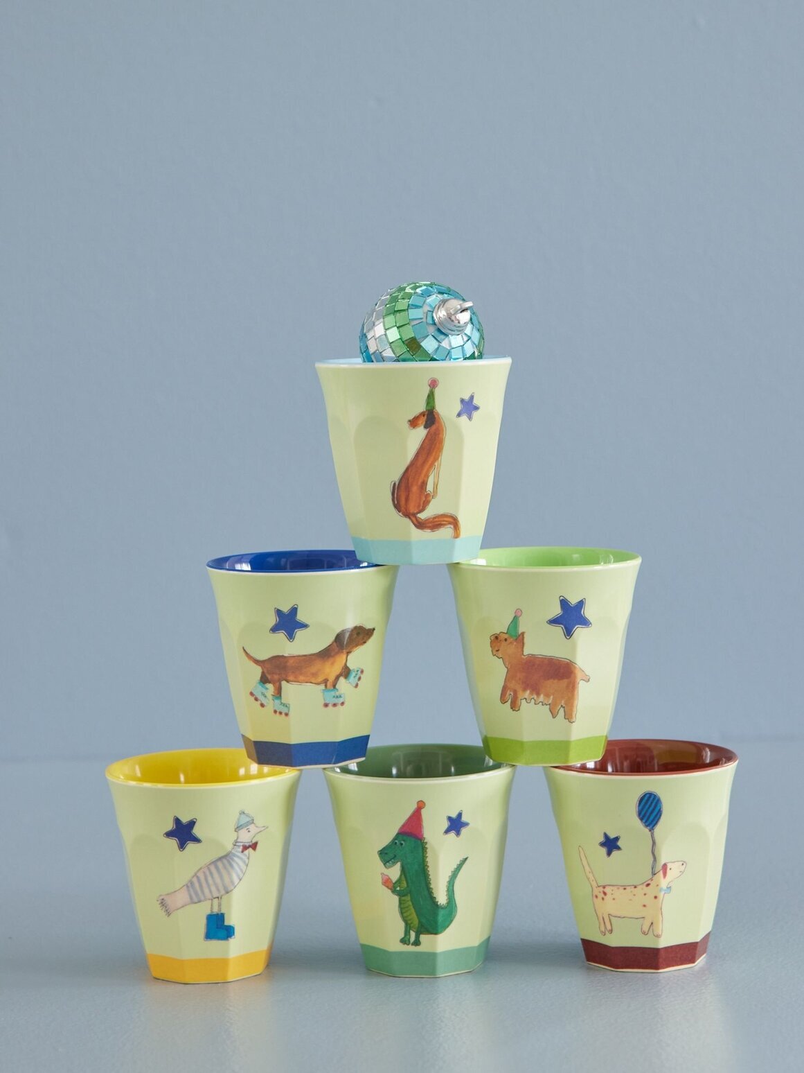 Melaminmuggar i set om 6 stycken. Passar till både kalaset, festen, picknicken och framförallt hemma till barnen. Håller i alla lägen, inget glasskross efter en tappad mugg. Tål maskindisk men ska inte användas i micro.