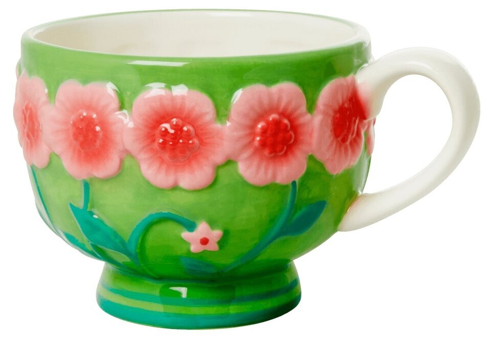 Keramikmugg med vackra blomsterdetaljer, finns i flera olika färger. Kan diskas i diskmaskin.