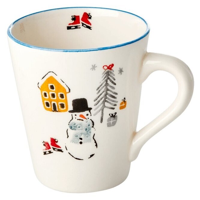 Vacker vit mugg i stengods med handmålat julmotiv från Rice, finns i flera olika motiv fina att mixa & matcha.