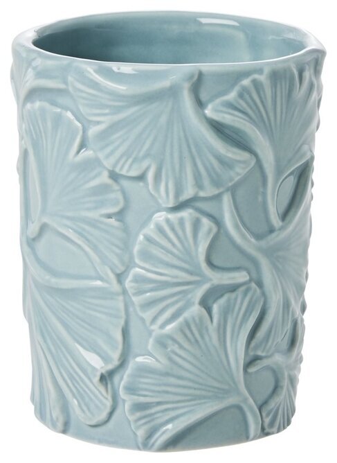 Tandborstmugg i stengods med präglat kronbladsmönster. Passar fint att matcha tillsammans med tvålpump Winter Sky Blue.