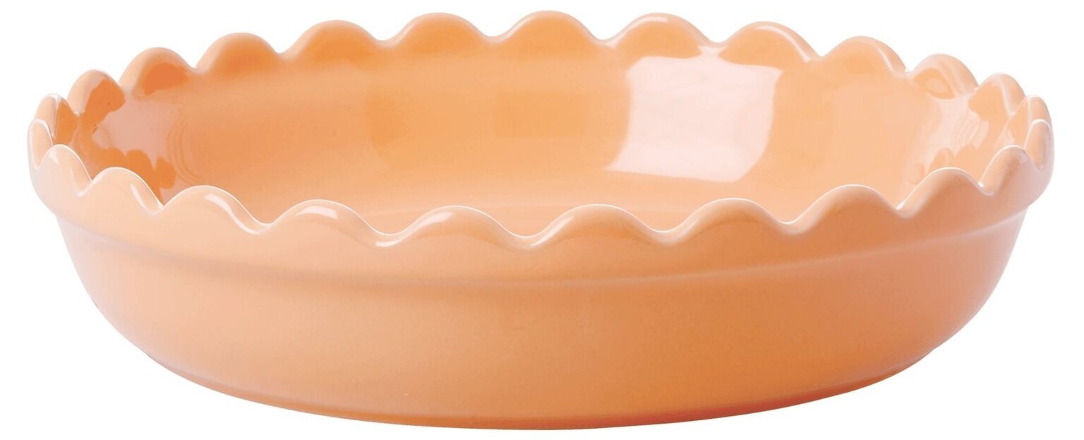 Aprikosfärgad pajform i stengods med vacker vågig kant, finns i flera olika storlekar. Läs mer