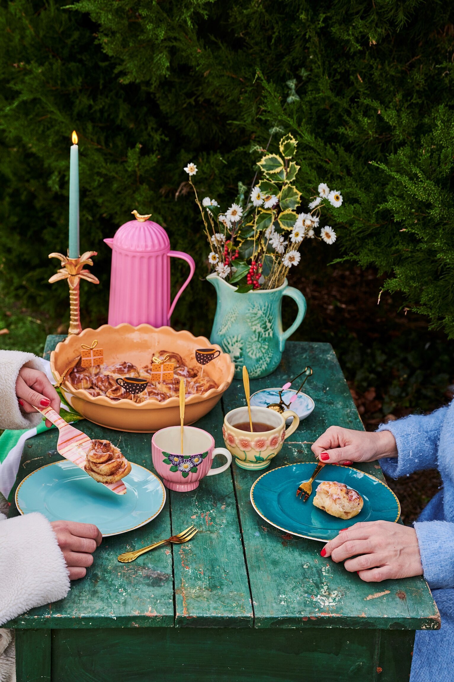 Varje produkt är handmålad så det kan förekomma små variationer och färgskiftningar vilket gör varje produkt unik. Ugnsformarna är glaserade för att få den fina blanka ytan.