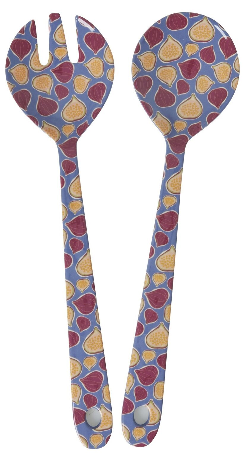 Salladsbestick i melamin med motiv av fikon, från Rice. Finns i flera olika varianter.