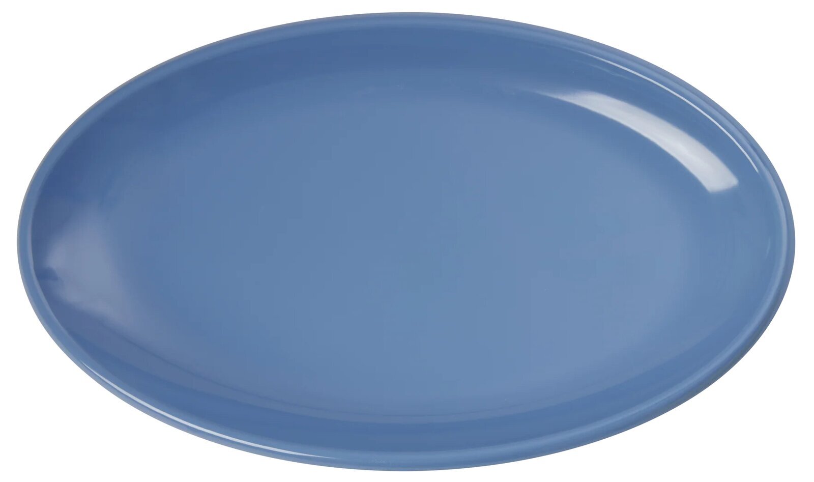 Stort serveringsfat i melamin i en fin blå nyans, från Rice.