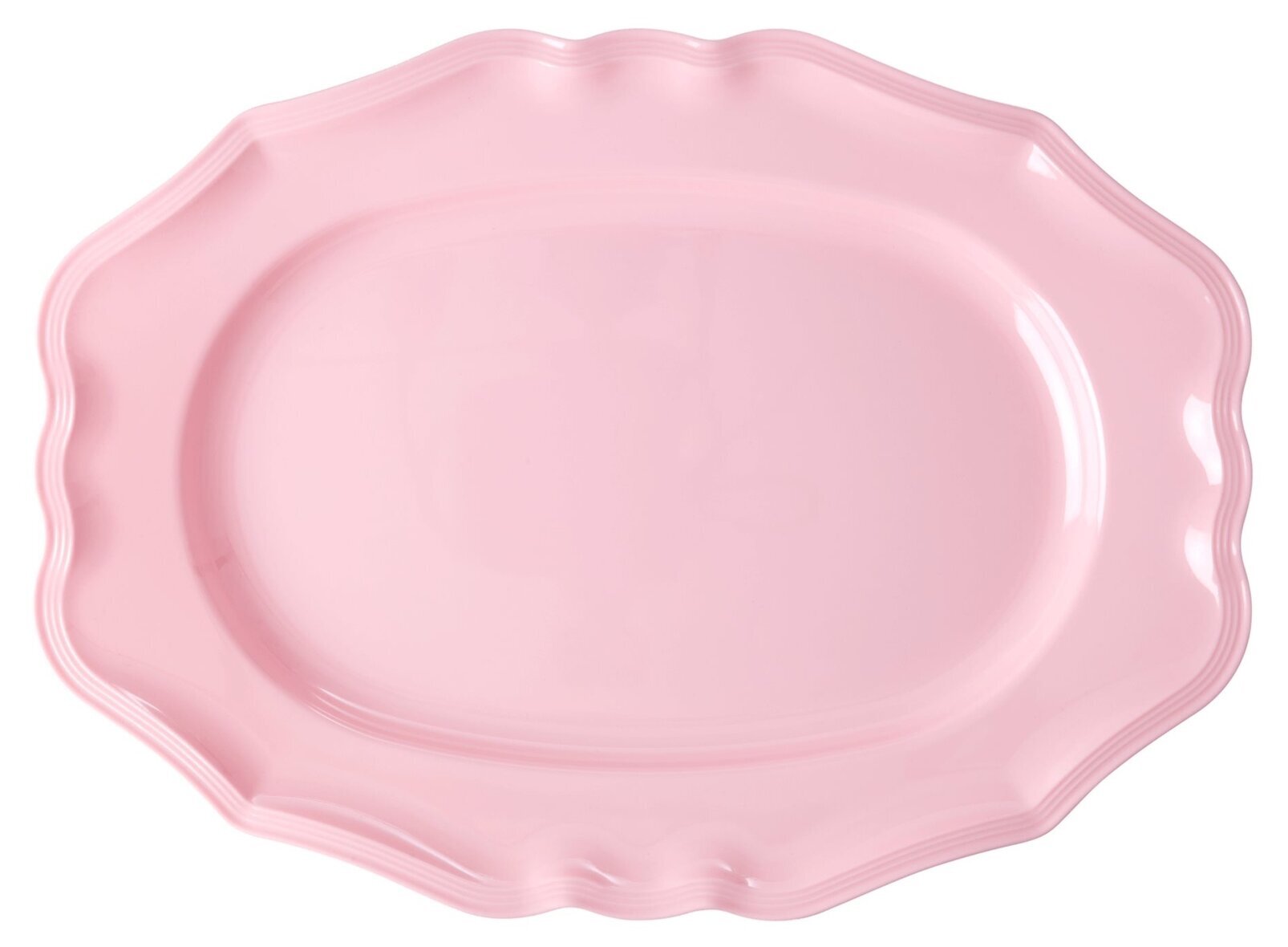 Bild av ett mjukt rosa serveringsfat med vågformad kant