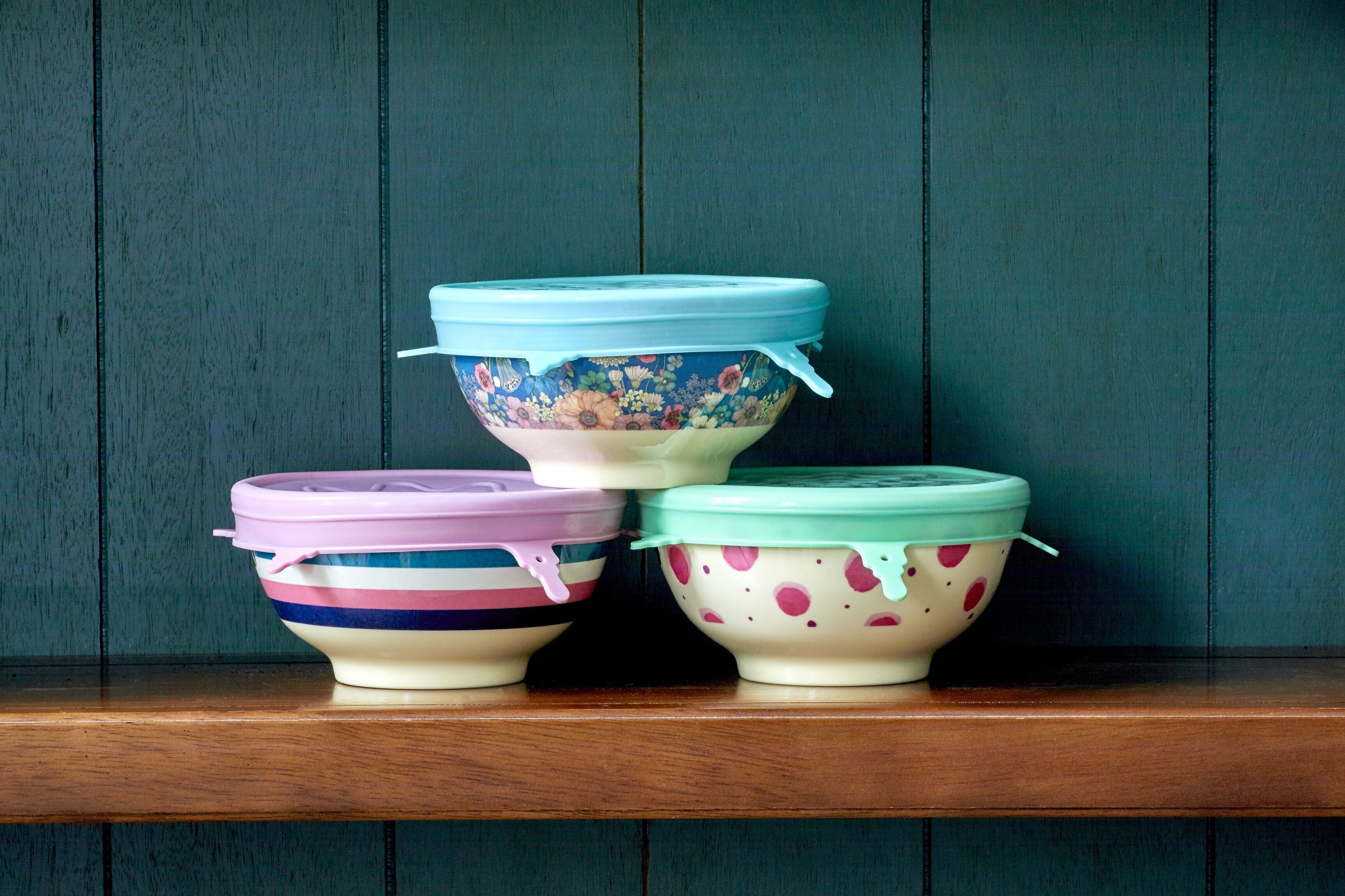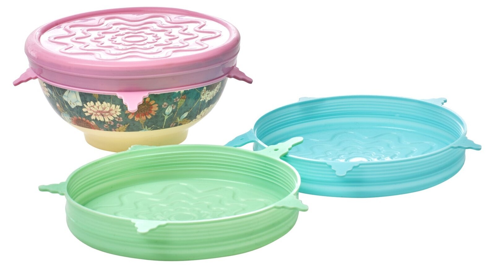 Silikonlock till melaminskål, smidigt att trä över skålen & förvara matrester i kylskåp. Finns i 3 olika färger. Läs mer