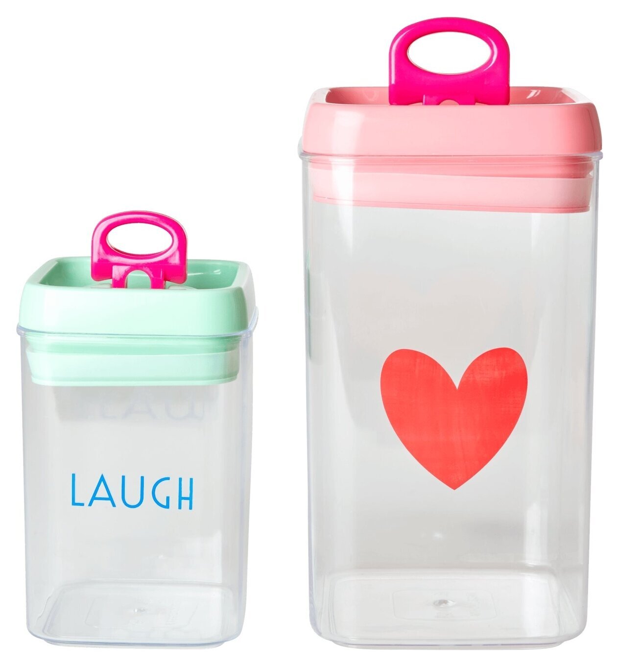Färgglada plastburkar i set om 2 stycken med lufttäta lock till förvaring av bl a flingor, gryn, pasta ,godis mm.