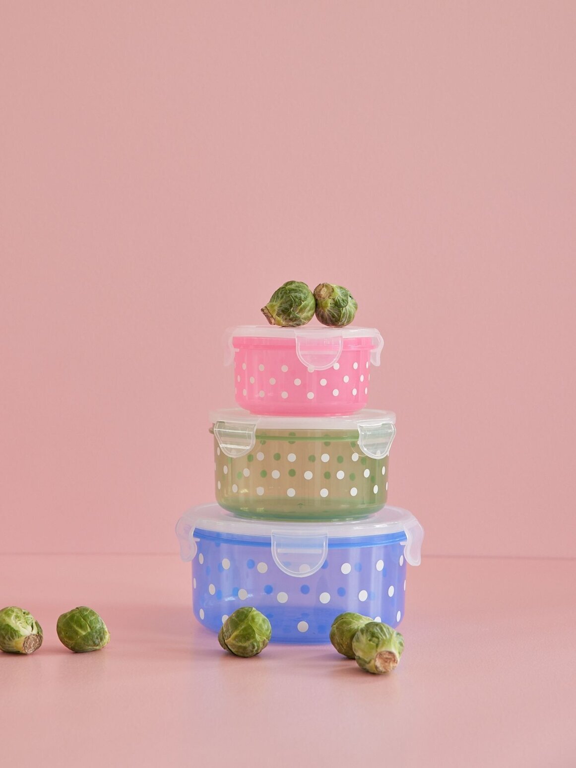 Praktiska matlådor/förvaringsburkar med lock i set om 3 stycken. Godkända för livsmedel. Från Rice.