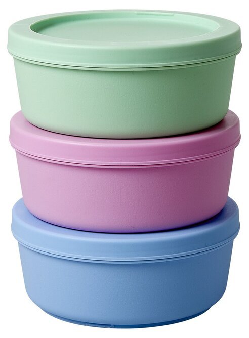 3 stycken små matlådor i pastellfärger med lock. Smidiga att använda både i kyl & skafferi och kan med fördel användas både till middagens överblivna rester som till barnens utflykter med goda kex & bullar. Godkända för livsmedel. Tål maskindisk.