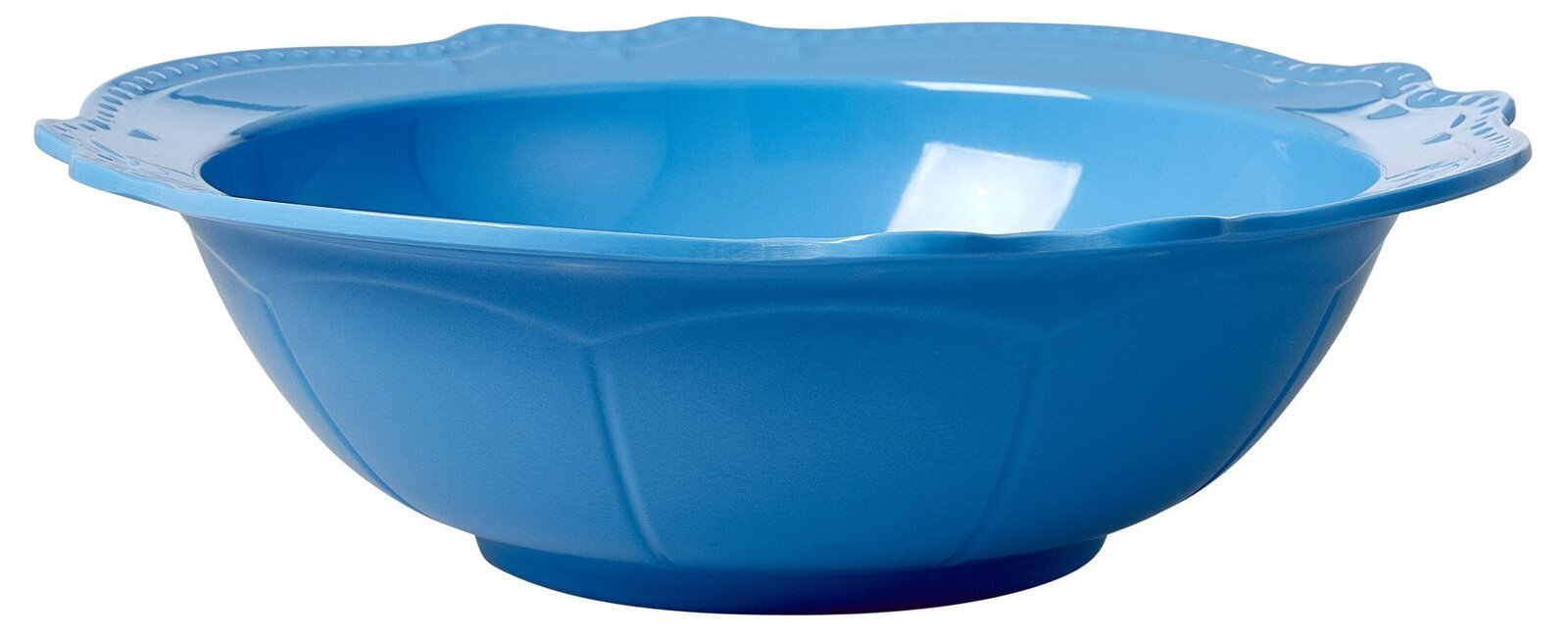 Salladsskål i en vacker himmelsblå färg med kulkant runt kanten, kan även användas som uppläggningsskål till potatis, ris, chips, popcorn eller kanske som en extra stor godis skål.