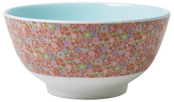 Bilden som visas är av en dekorativ skål tillverkad i melamin, en produkt tillgänglig hos Köpstaden.se. Skålen, som tillhör varumärket Rice, har en livfull och iögonfallande design. Dess yttre pryds av ett intrikat blommönster mot en röd bakgrund. Blommorna varierar i färg och form, med inslag av rosa, lila, grönt och blått som sprider sig över hela ytan, vilket skapar en dynamisk och mångfacetterad estetik.