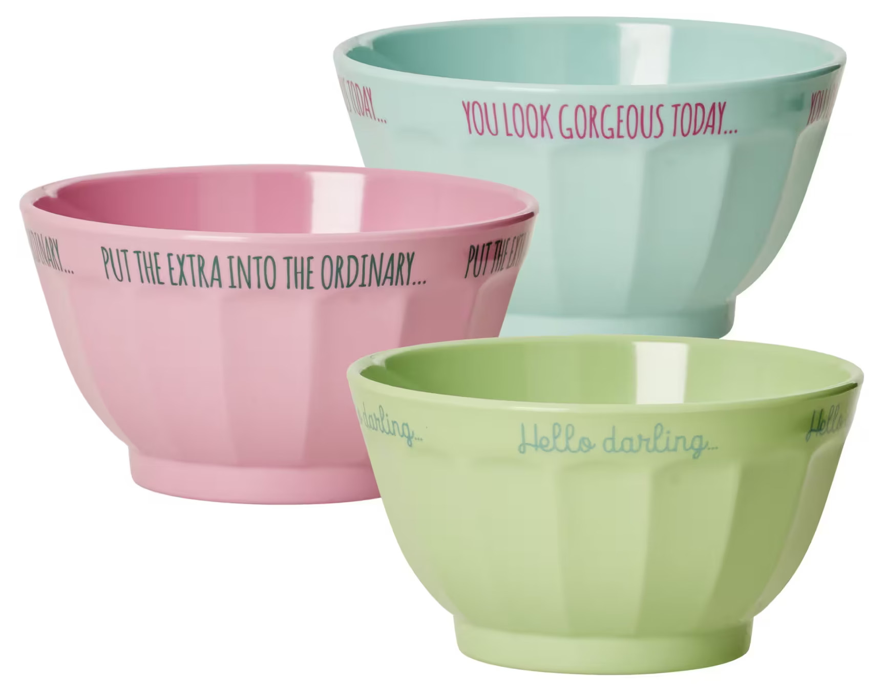 Djup skål i slitstark melamin. Användbart både i hemmet och på picknicken. Kan användas till flingor, desserter, snacks, dipp mm. Kan diskas i diskmaskin men ska inte användas i micro. Finns i 3 olika färger med härliga budskap.