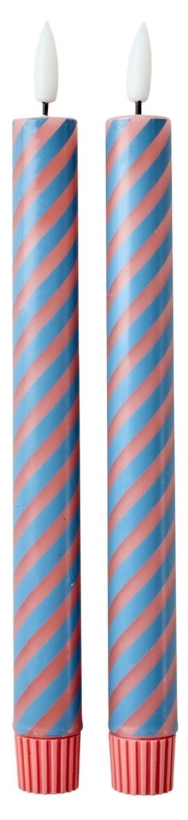 Ge ditt hem en färgklick med dessa randiga LED-ljus från Rice. Med sin glada kombination av korallrosa och blått blir de ett lekfullt inslag i varje ljusstake – perfekta för både fest och vardag. De ser ut som riktiga ljus men brinner tryggt med LED-flamma, vilket gör dem idealiska även i hem med barn eller husdjur.