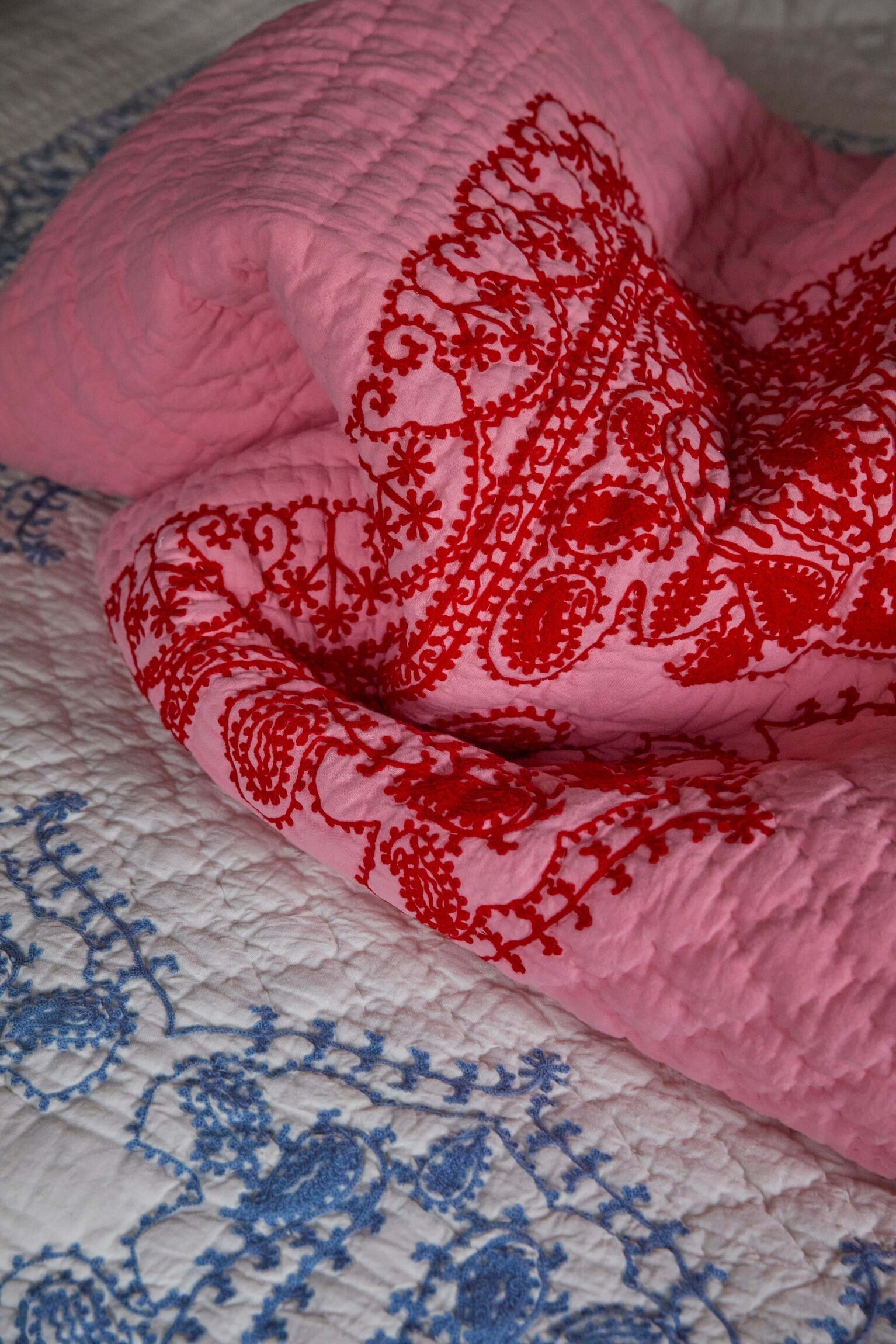 Överkast Pink/Red Embroidery