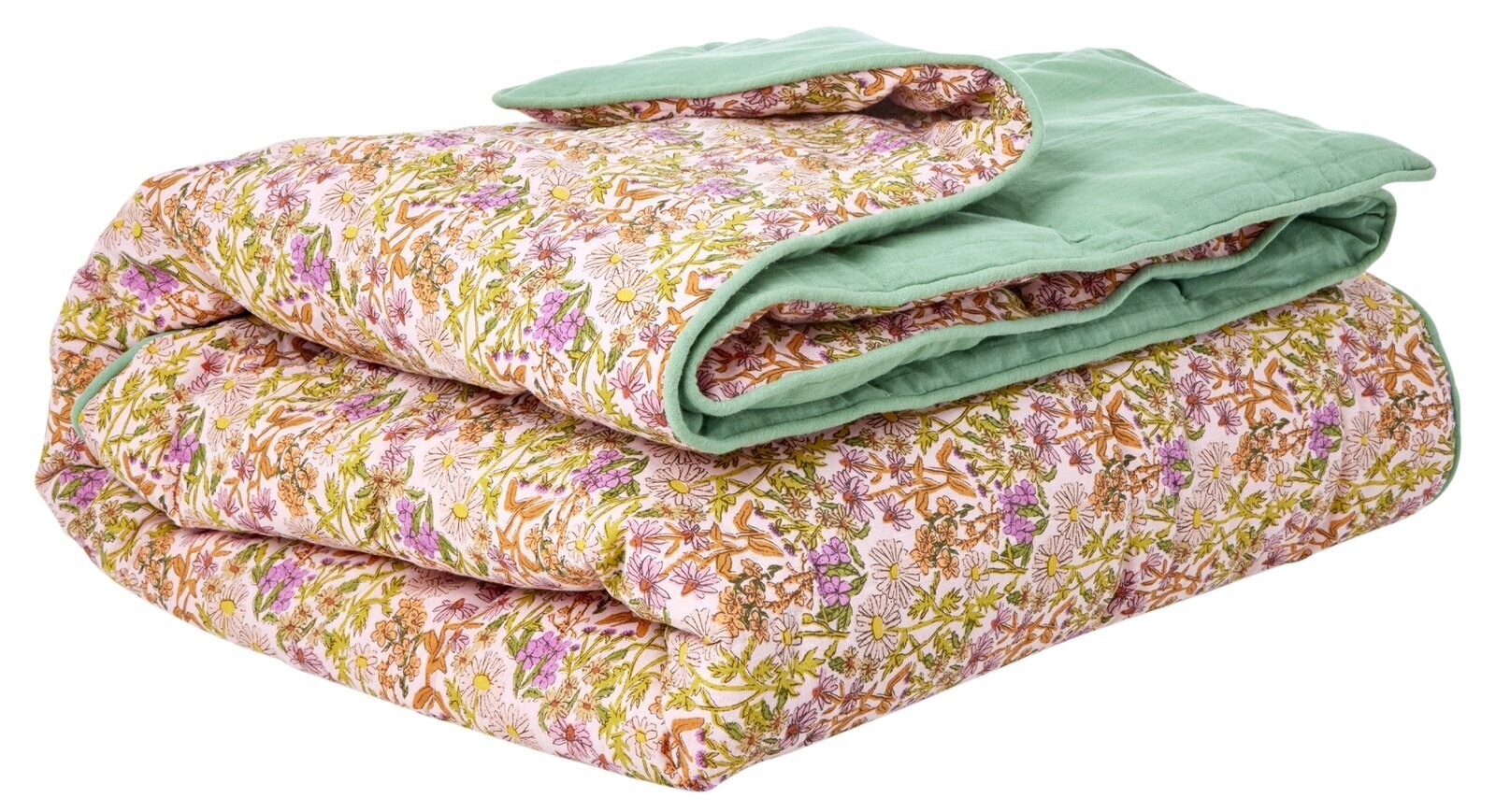 Bomullstäcke/filt med motiv av vackra blommor i färgglada nyanser, från Rice. Läs mer